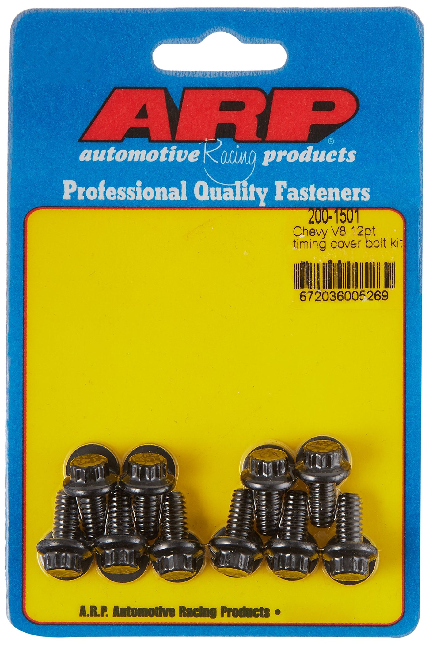 To maintain a reputation for zero defects, ensure optimum quality control, and produce fasteners of exceptionally high quality, ARP controls all aspects of the manufacturing process, performing all operations in-house where they can be closely monitored. This timing cover bolt kit is a good example of how ARP takes extraordinary steps to produce the very finest products of their kind on the market today. These bolts are manufactured from black oxide finished 8740 chrome moly steel, which is rated at 170,000 psi. They feature compact 12-point style heads and come complete with high quality washers.