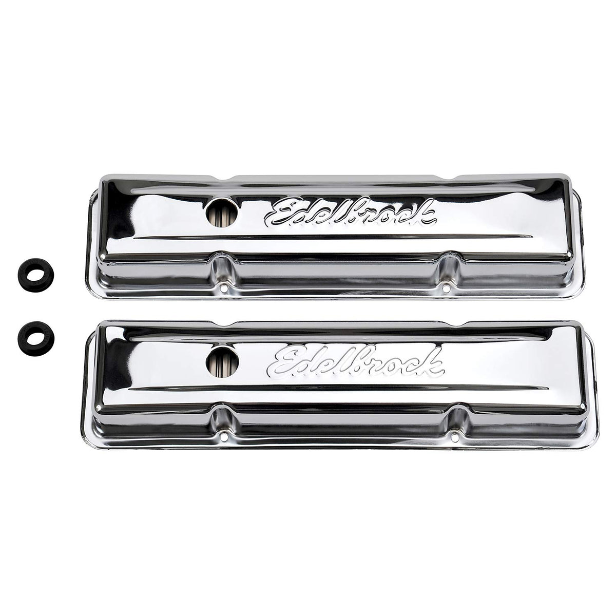 Q: What material is the Edelbrock valve cover made of?A: The Edelbrock 4449 Signature Series Valve Cover is made of high-quality aluminum, providing durability and a stylish chrome finish.