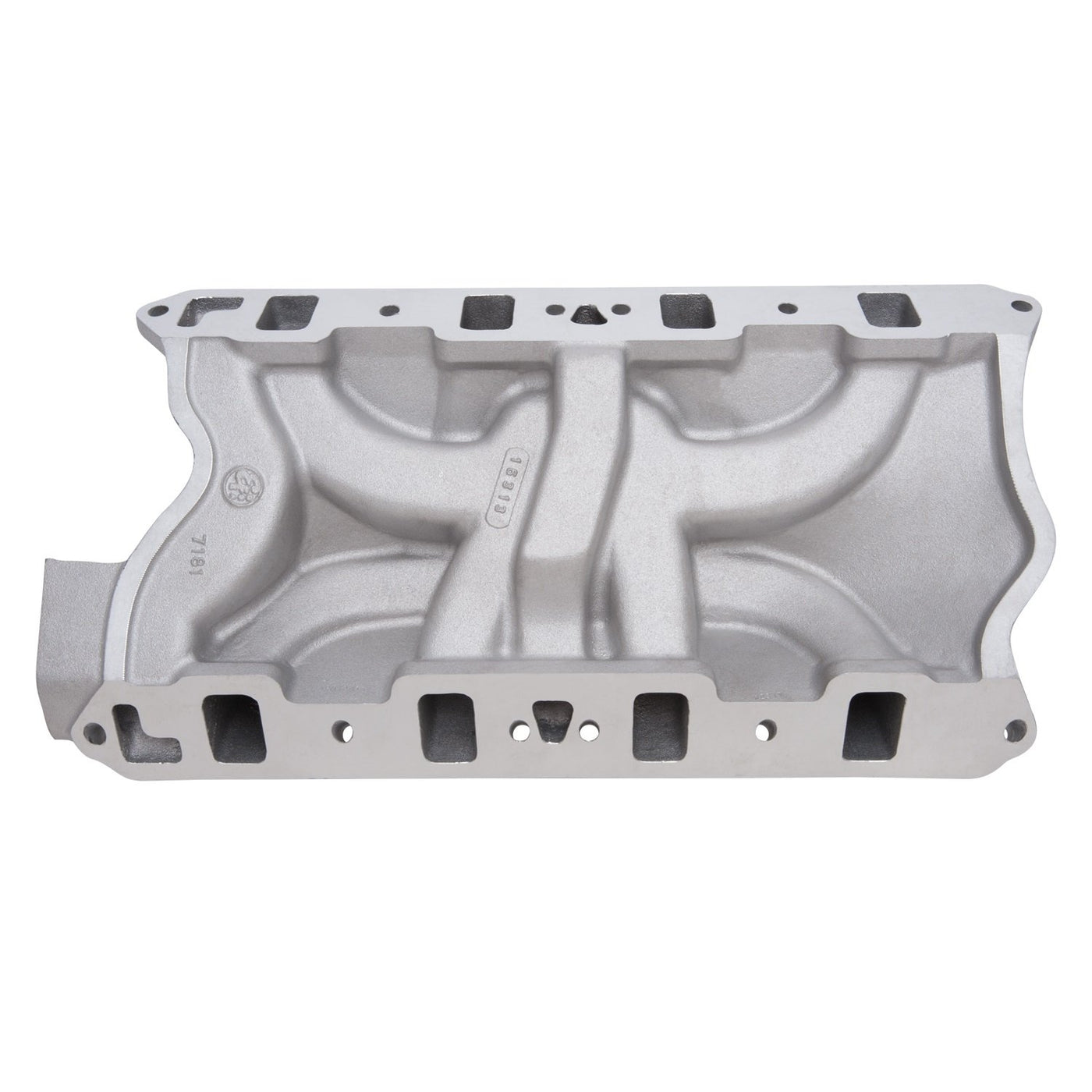 The Edelbrock Performer RPM Intake Manifold is the network of passages that direct air or air-fuel mixture from the throttle body to the intake ports in the cylinder head. It is designed especially for spread-bore carburetors but also works with Edelbrock square-bore carburetor without adapter. The Performer RPM intake manifolds have a high-rise, dual-plane layout, with patented runner tuning and a 180 degree firing order. The Performer RPMs have larger plenums and runners to match the free-flowing exhaust, high-lift cams, and other modifications of a high-output engine. The factory composition-type embossed gasket also works satisfactorily. They are intended for high-performance street or competition engines that run from 1, 500 to 6, 500 RPM. This manifold produces incredible top-end horsepower. It delivers maximum power with a broad torque curve for high-performance street applications. This manifold has no provisions for exhaust heated or stock-style choke.