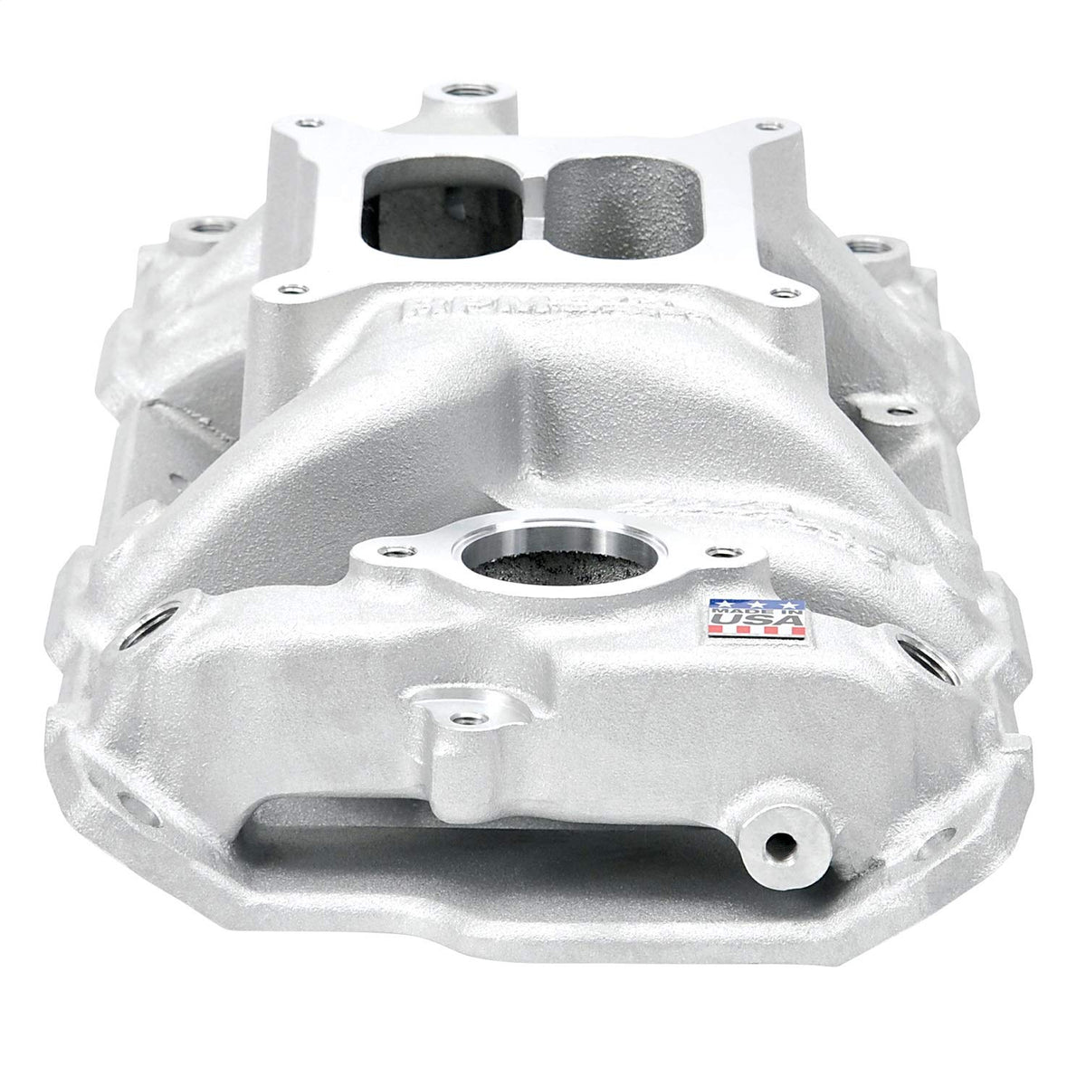 Q: What materials are used in the construction of the Edelbrock 7501 intake manifold?A: The Edelbrock 7501 is made from high-quality aluminum, which provides durability and excellent heat dissipation, enhancing overall performance.