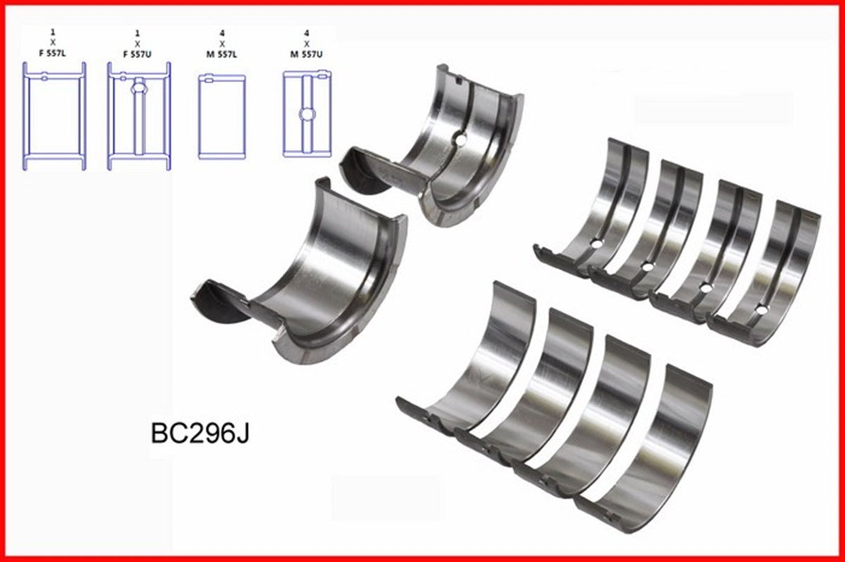 Q: What parts are included in the Engine Re-Ring Re-Main Kit?A: The Engine Re-Ring Re-Main Kit includes a Full Gasket Set, Piston Rings, Rod Bearings, Main Bearings, and Valve Stem Seals. This comprehensive kit contains all the essential components needed to freshen up a worn engine.