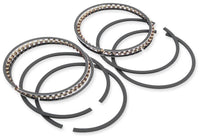Available in standard and oversize versions. Feature a cast top ring (chrome 900cc XL). Reverse torsional taper face second ring and easy spiral on three-piece oil rings. NOTE: Each PART # includes enough rings for two pistons except where noted.