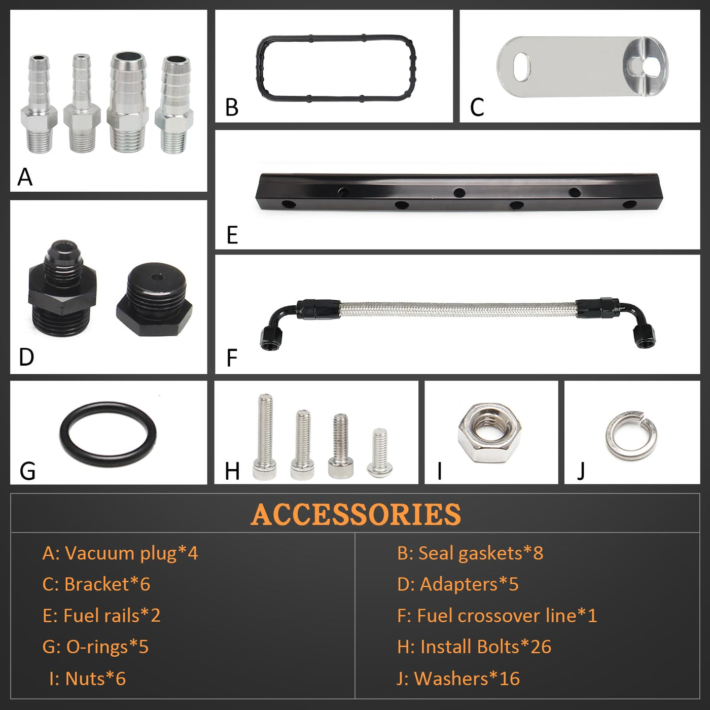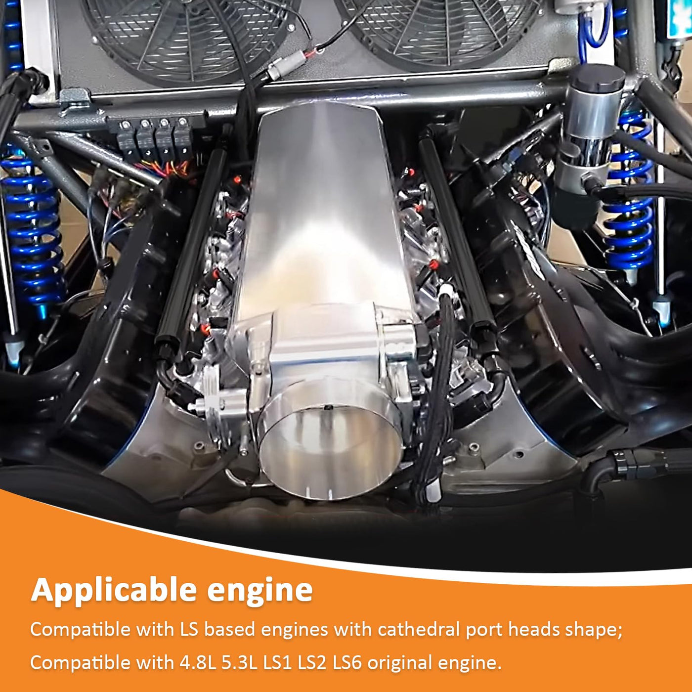 Application:Compatible with LS1/LS2/LS6 Original Engine.Compatible with Chevrolet Small Block V8 GEN. III/IV LS Based Engines with Cathedral Port Heads Shape; 4.8L / 293 CI (For LR4) 5.3L / 325 CI (For L33,L59,LM4,LM7) 5.7L / 346 CI(For LS1,LS6) 6.0L / 364 CI(For LQ4,LQ9,LS2)Some Models:Compatible with Chevrolet Corvette 1997-2004Compatible with Pontiac Firebird Formula, Trans AM 1998-2002Compatible with Corvette Z06 2001-2004Compatible with Cadillac CTS V-series 2004-2005Compatible with Chevrolet Corvette 2005-2007Compatible with Chevrolet SSR 2005-2006Compatible with Chevrolet TrailBlazer SS 2006-2009Compatible with Cadillac CTS V-Series 2006-2007Compatible with Pontiac GTO 2005-2006Compatible with Saab 9-7X Aero 2008-2009NOTE: For LS 4 bolt intake with cable drive only, not for drive by wire.Package includes: Intake manifold*1 Throttle body*1 (with IAC and TPS) Fuel rails*2 Fuel crossover line*1 Bracket*6 Seal gaskets*8 V-acuum plug*4 (1/4NPT & 1/8NPT) Adapters with o-rings*5 (one is for backup) Install bolts*10+6 Nuts*6 Washers*16