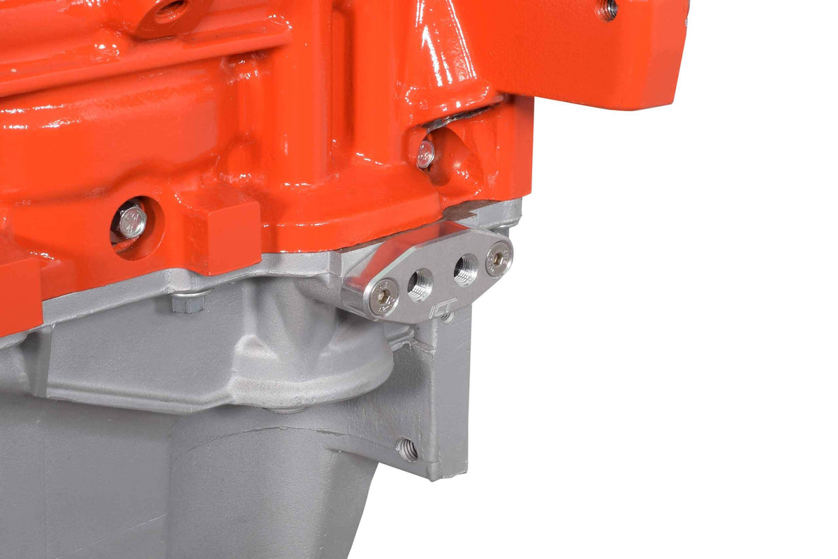 Q: What materials are used in the construction of this oil adapter plate?A: The ICT Billet LS Twin Turbo Oil Feed Line Adapter Plate is made from aerospace-grade billet aluminum produced in the USA. This high-quality material ensures durability and reliability in high-performance applications.
