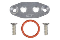 Q: What is included with the purchase of this oil feed line adapter plate?A: With the purchase of the ICT Billet LS Twin Turbo Dual 1/8" NPT Oil Feed Line Adapter Plate, you will receive one plate along with an O-ring and the necessary mounting bolts for installation, ensuring a complete package for your setup.