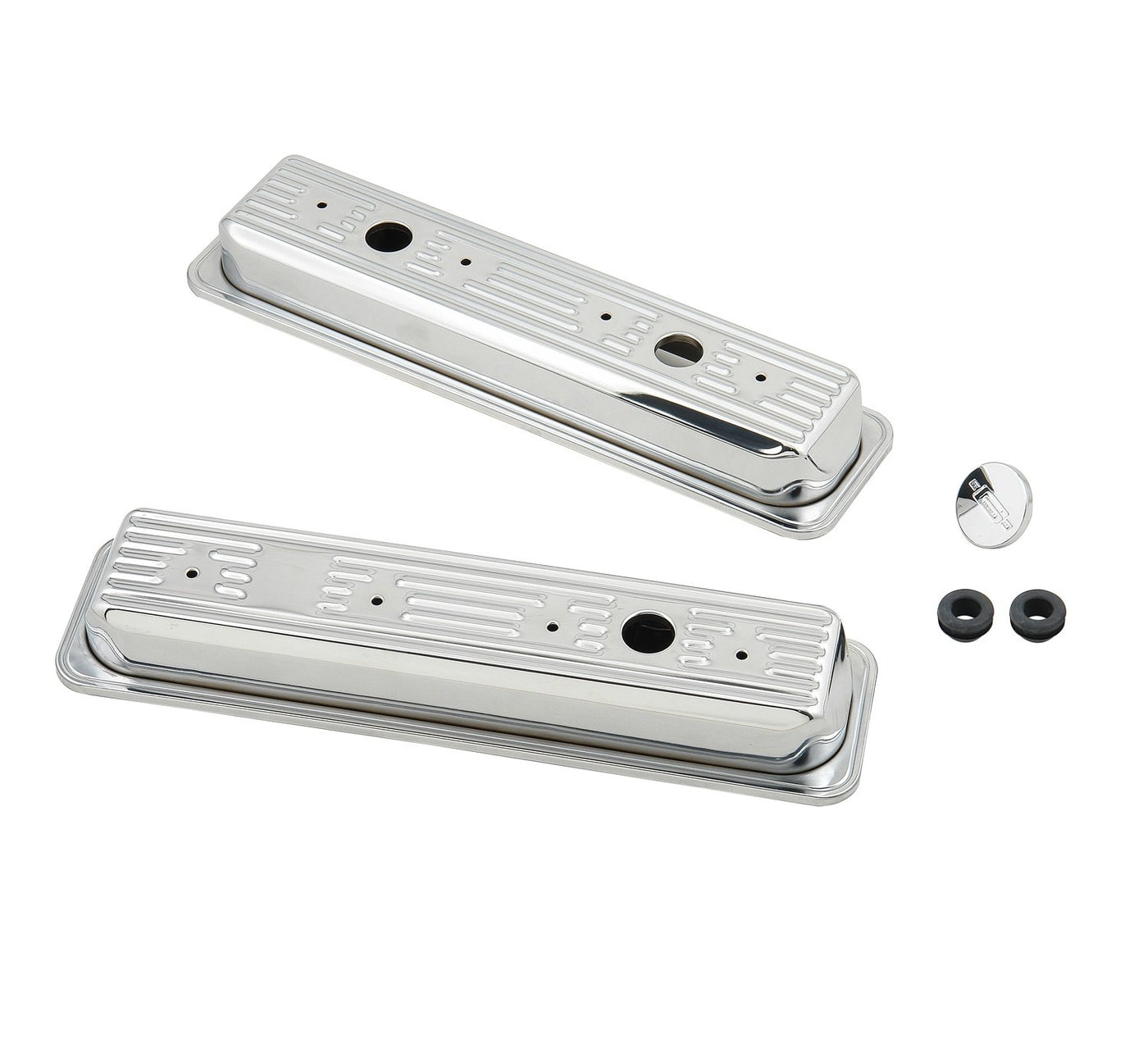 Mr. Gasket Chrome Plated Valve Covers are designed to fit the engine oil filler tube. They are chrome plated and corrosion resistant. These covers are easy to use with custom chrome filler tube and are backed by a limited warranty.