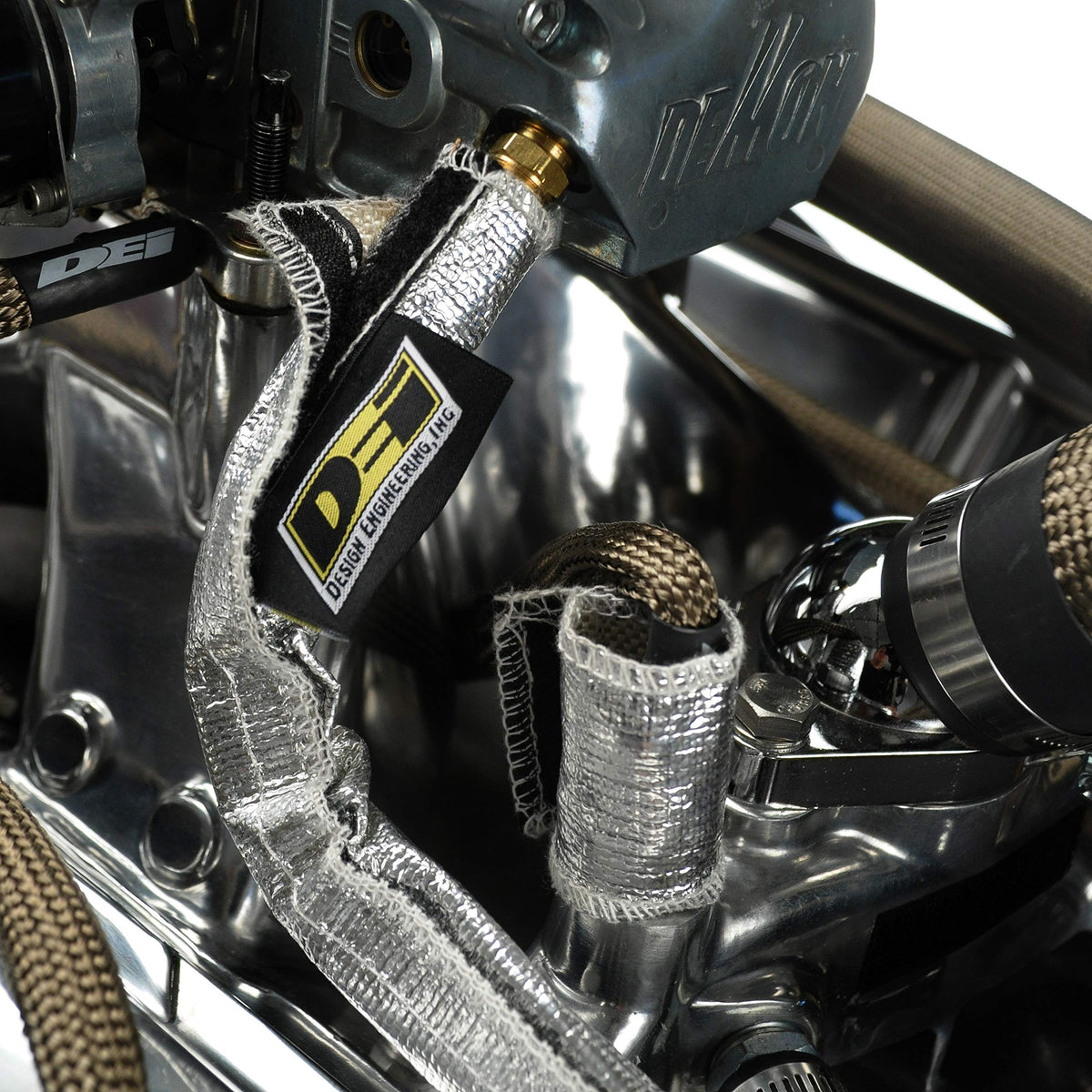 The Design Engineering Heat Shroud is made from a high temperature rated glass fiber fabric with an aluminized outer facing. Same as Heat Sheath but with the added convenience of a hook & loop closure design along the open edges. Without the need of removing one end of connected wires, cables and hoses, simply wrap Heat Shroud around whatever needs protection and close the edges.