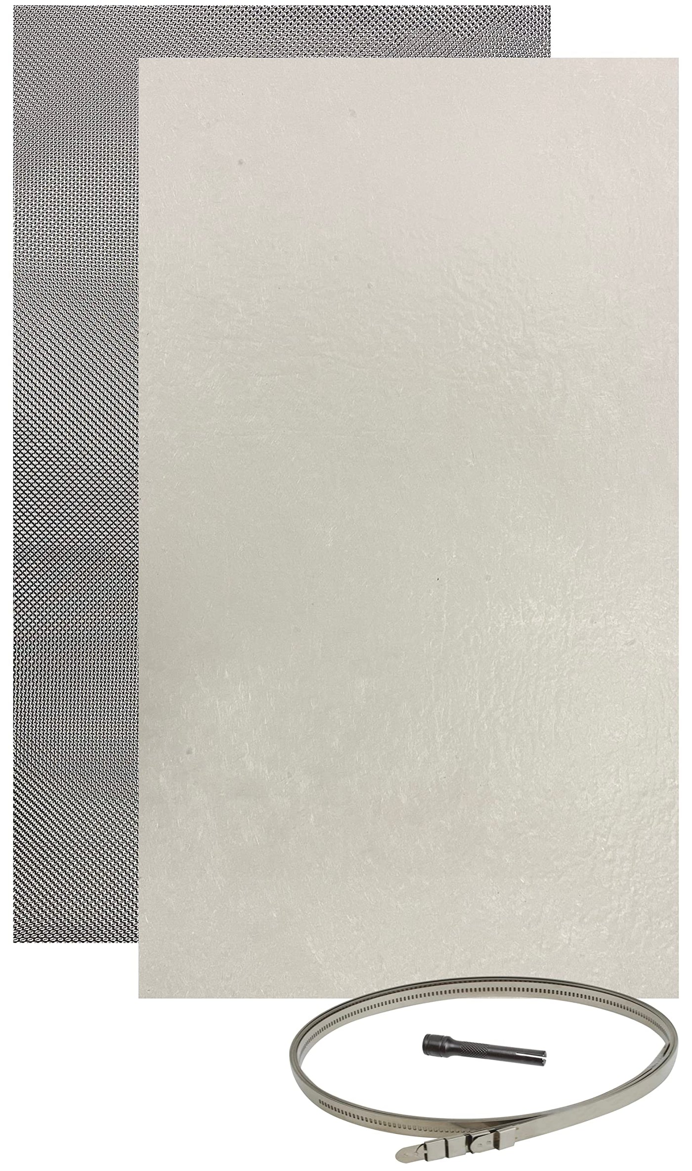 Q: What is included in the muffler shield kit?A: The kit includes one 42" x 24" Muffler Shield, four 40" x 1/2" Positive Locking Ties for installation, and a free Locking Tie Tool for added convenience.