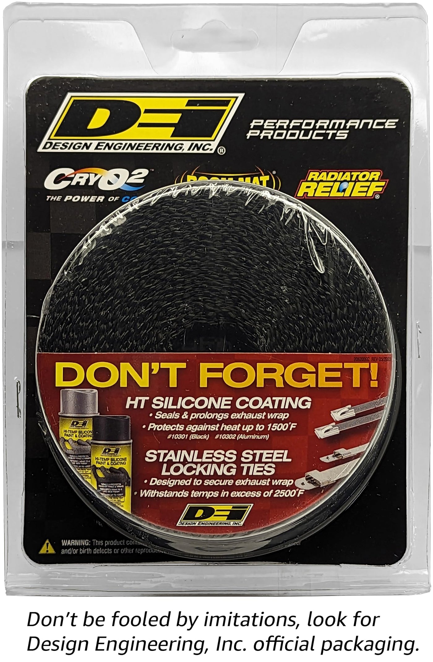 Introducing Dei Titanium Exhaust Wrap Why Should I Wrap My Headers Or Pipes With Dei Titanium Exhaust Wrap? Wrapping Exhaust Piping Is Crucial For Controlling Exhaust Temperatures And Reducing Radiant Under-Hood Heat By Up To 50%. Keeping Exhaust Gases Hotter Within The System Decreases Density And Increases Flow, Improving Exhaust Scavenging, System Efficiency, And Reducing Intake Temperatures For Increased Horsepower Gains. What Is Titanium Exhaust Wrap Made Of? Our High-Temp Exhaust Wrap Is Made From Pulverized Lava Rock, Stranded Into Fiber Material, And Woven Into A Tight Weave. It Handles More Heat Than Typical Glass Fiber Material. Why Choose Titanium Exhaust Wrap Over Glass Fiber Wrap? Our Exhaust Pipe Wrap Is Stronger And More Durable Than Other Wraps, Ensuring Maximum Thermal Performance. What Is The Temperature Rating For Titanium Exhaust Wrap? Our Heat Shield Wrap Withstands Direct Heat Up To 1800F And Radiant Heat Up To 2500F. About Design Engineering: Design Engineering Inc. Is A Us Manufacturer With 30 Years Of Expertise In Innovative Heat And Sound Control Products. Our Solutions Enhance Performance And Provide Superior Protection Across Automotive, Marine, Power Sports, And Industrial Applications. Trusted By Racers, Builders, And Performance Enthusiasts, Dei Delivers Quality And Excellence In Heat Management And Acoustic Control