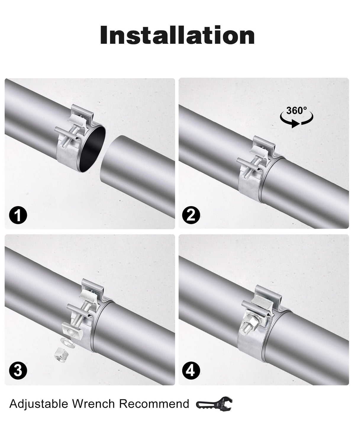 Q: How does the clamp provide a secure seal?A: The band clamps are designed to evenly distribute force of 360 degrees around the pipe, which helps to create a tight seal, significantly reducing the risk of exhaust leaks.