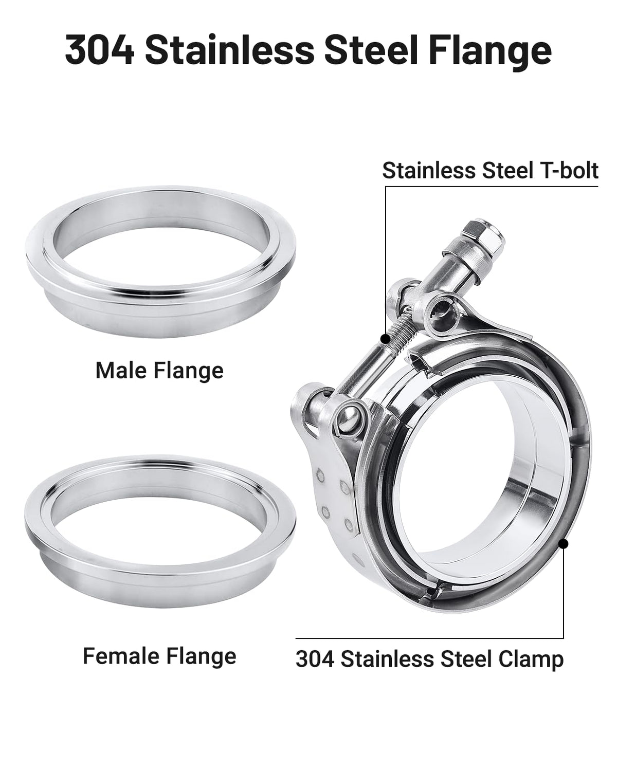 Q: What materials are used in the construction of the clamp and flanges?A: The clamp and flanges are made from high-quality 304 stainless steel, offering long durability, corrosion resistance, and high-temperature resistance, making them ideal for exhaust systems and turbochargers.