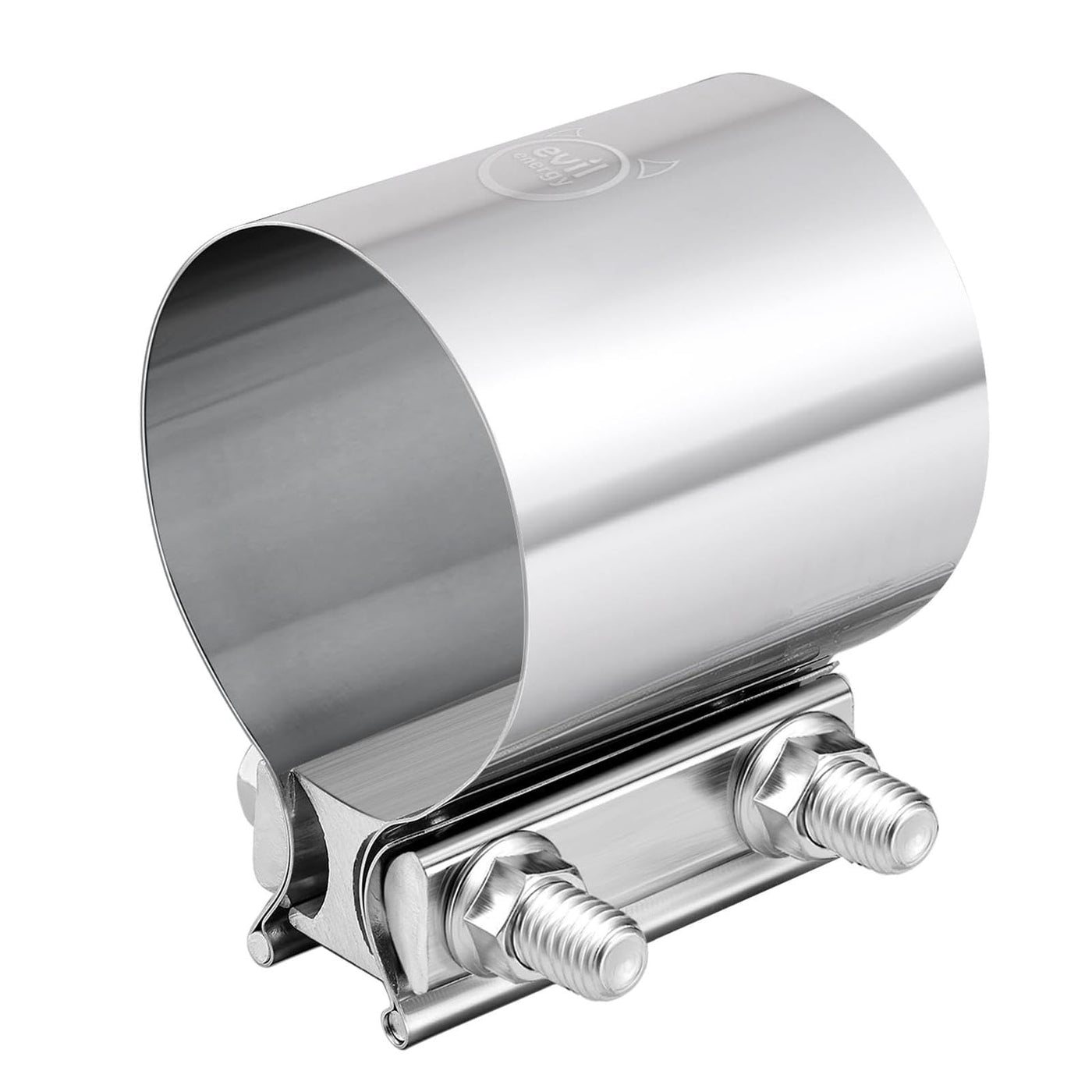 Q: How does the EVIL ENERGY exhaust clamp ensure a secure seal?A: The design of the EVIL ENERGY exhaust clamp distributes force evenly across the band, which helps to create a secure seal that prevents material deformation and leaks, providing reliable performance in exhaust systems.