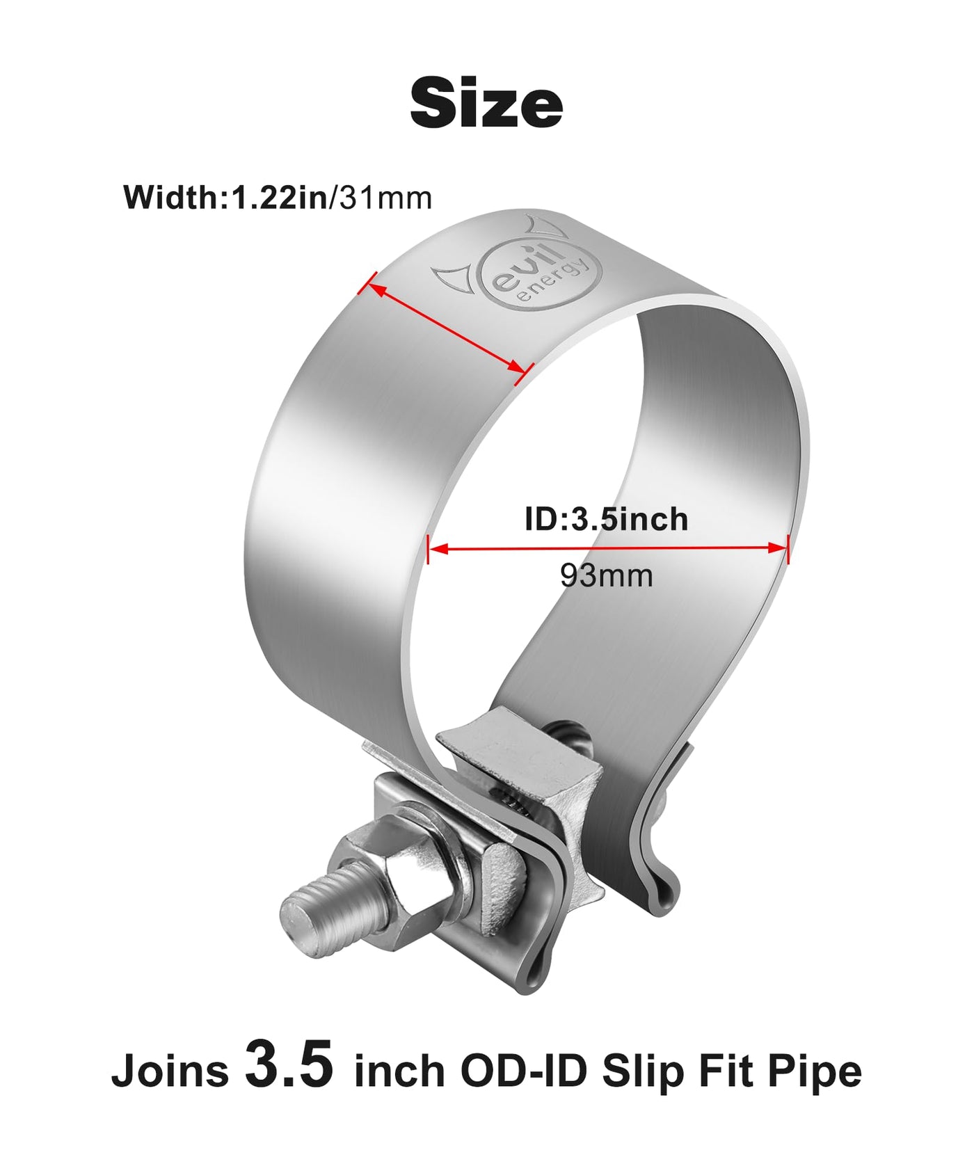 Evil Energy 3.5 Inch Exhaust Clamp,3 1/2 '' Narrow Band Muffler Clamp Stainless Steel For Pipes,Mufflers,Catalytic Converters 1P