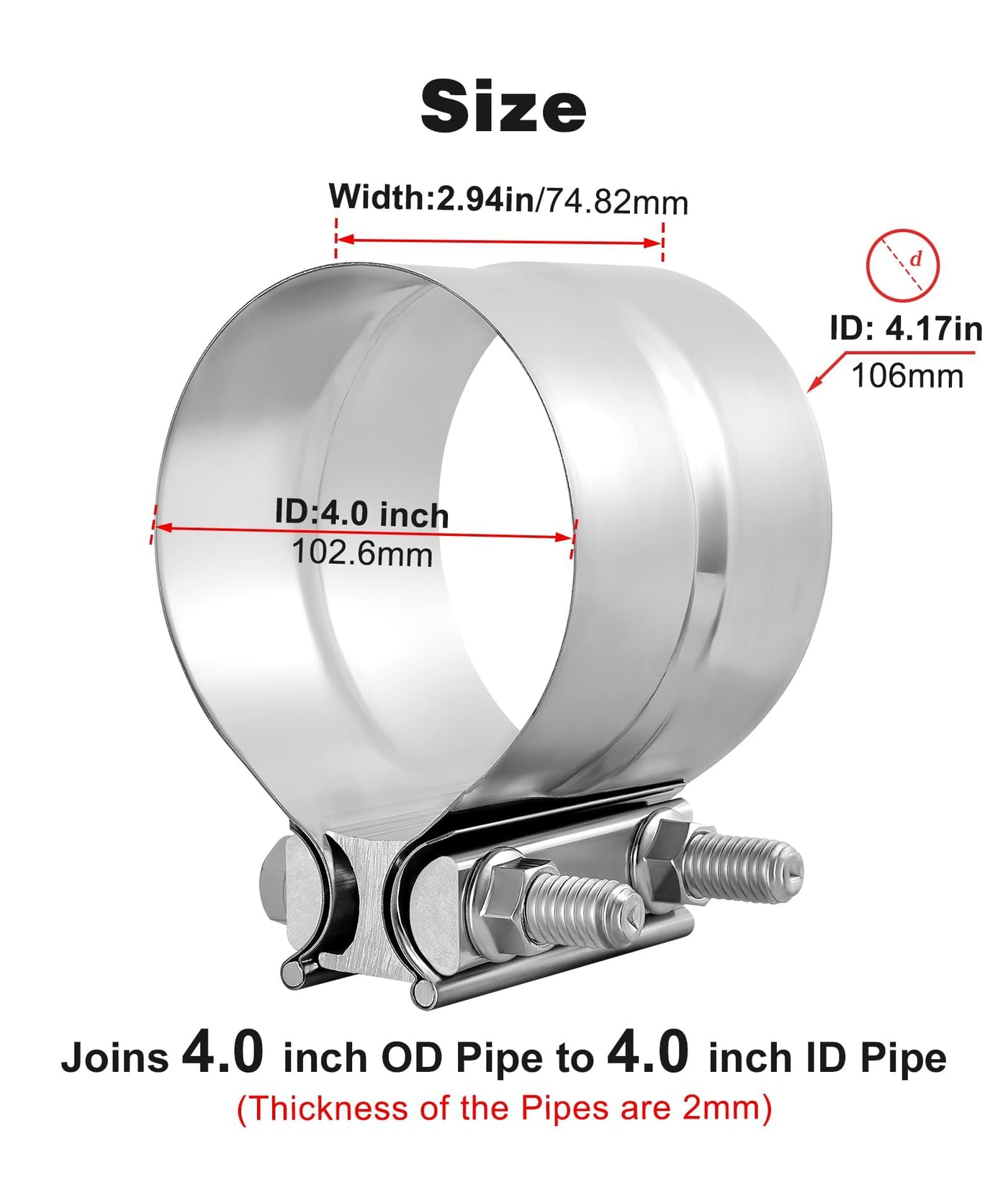 Evil Energy 4 ' ' Exhaust Clamp,Lap Joint Band Clamp Stainless Steel For Pipes,Mufflers,Catalytic Converters (1Pcs, 4 Inch)