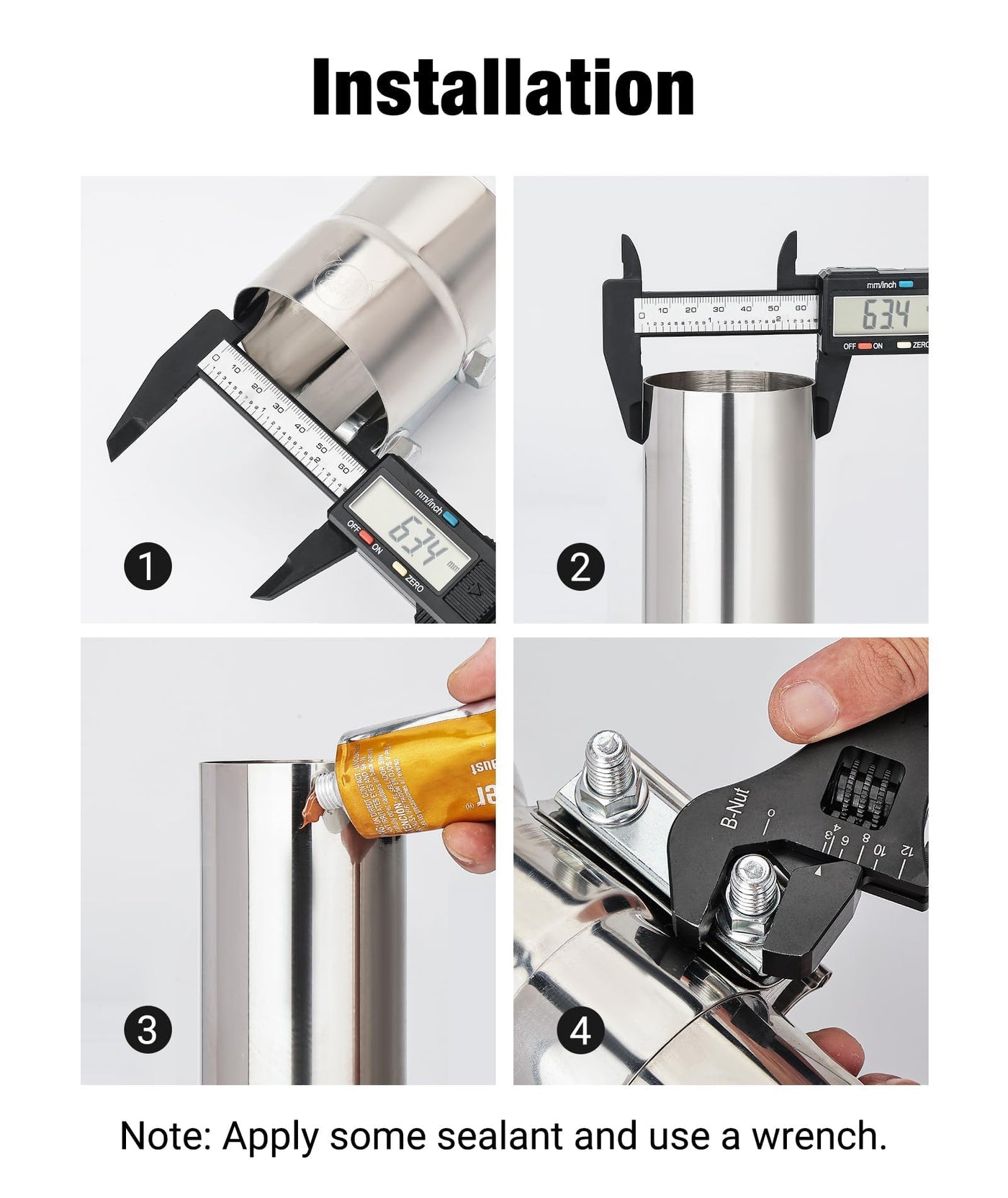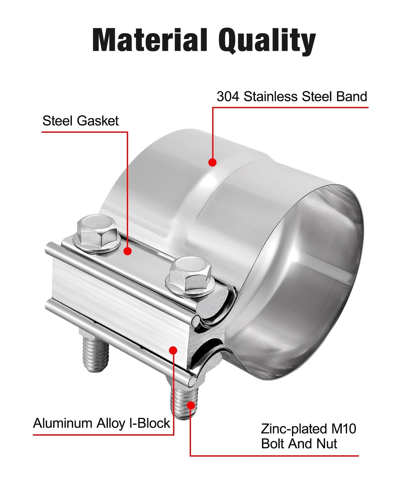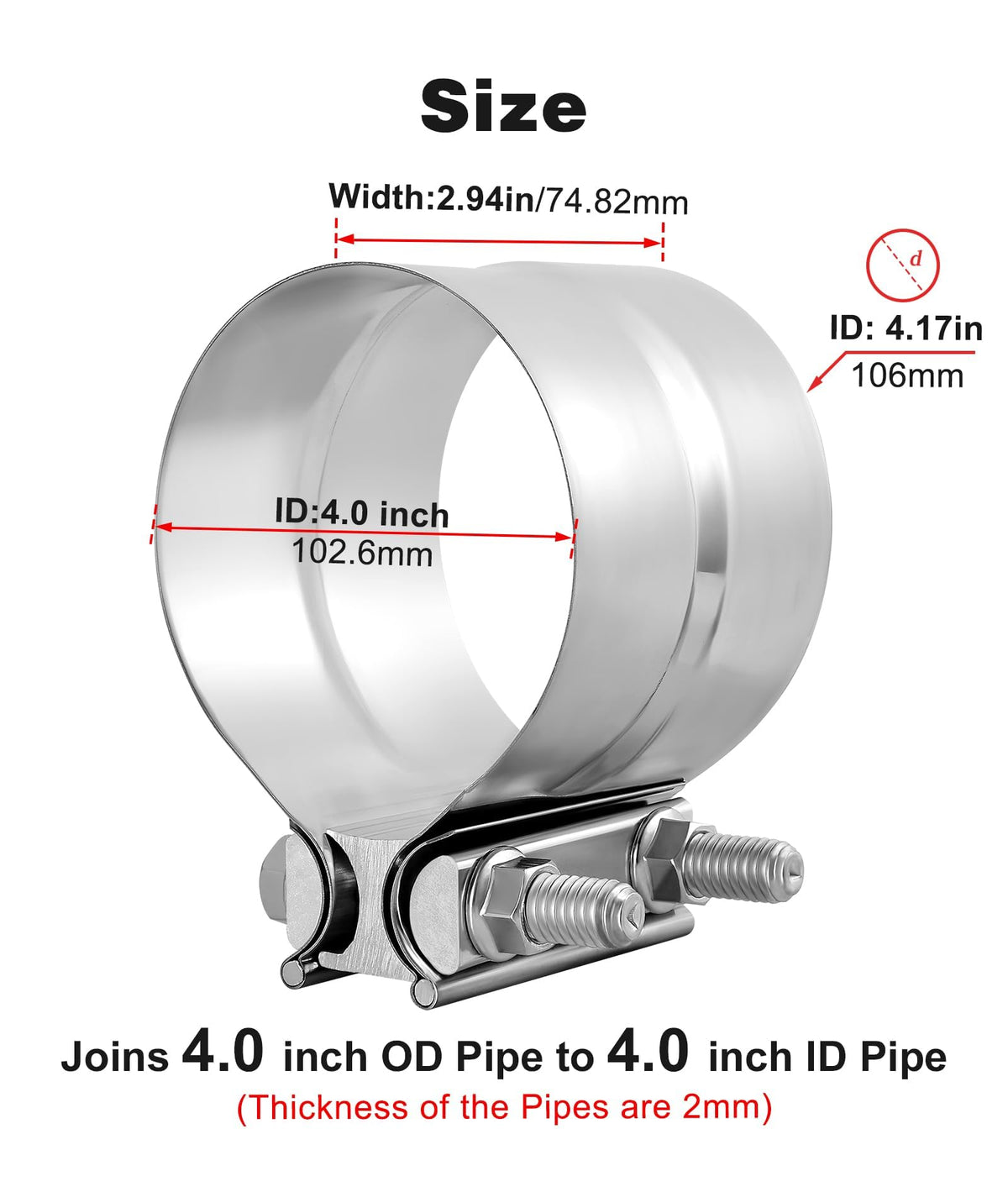 Evil Energy 4 ' ' Exhaust Clamp,Lap Joint Band Clamp Stainless Steel For Pipes,Mufflers,Catalytic Converters (4Pcs, 4 Inch)