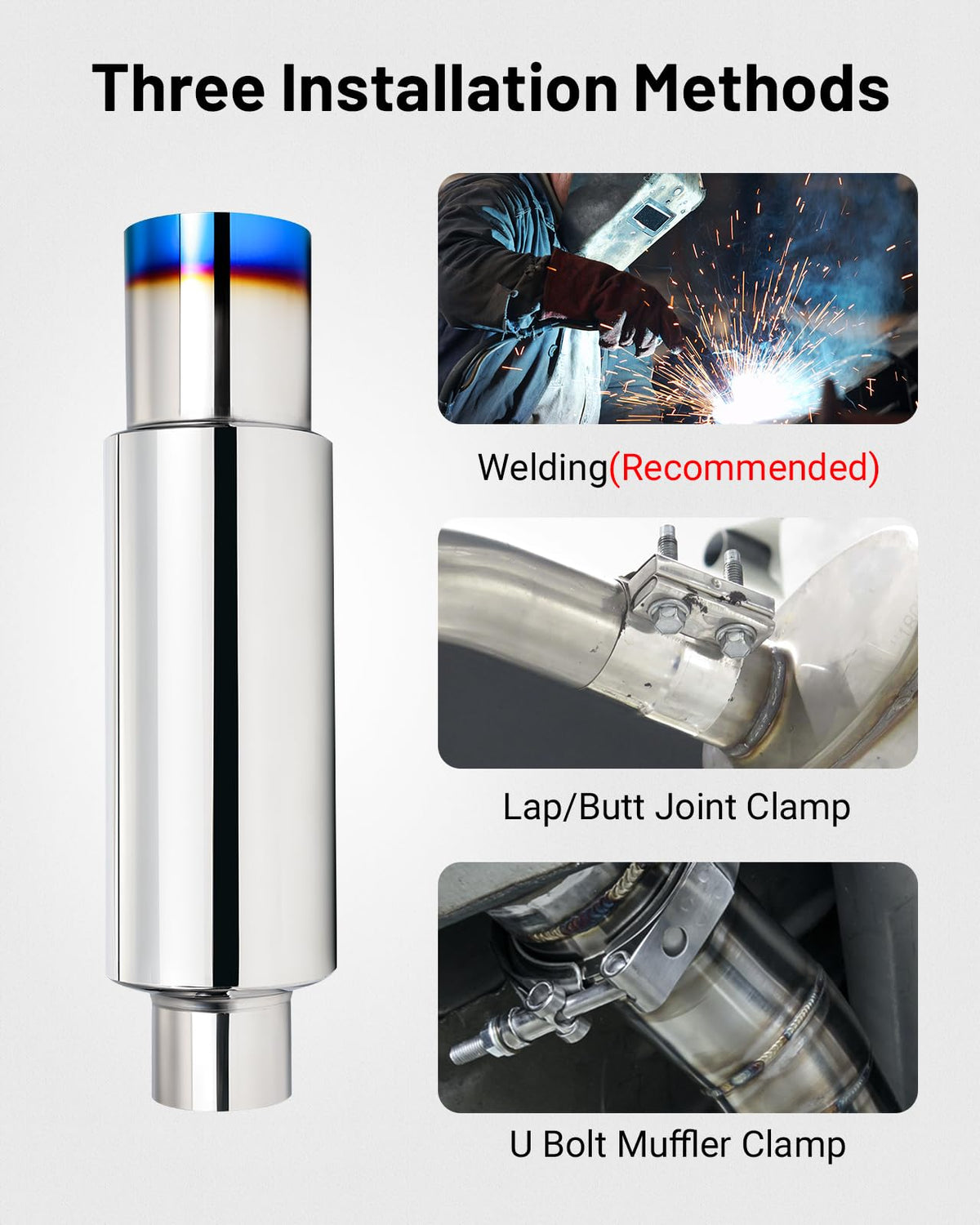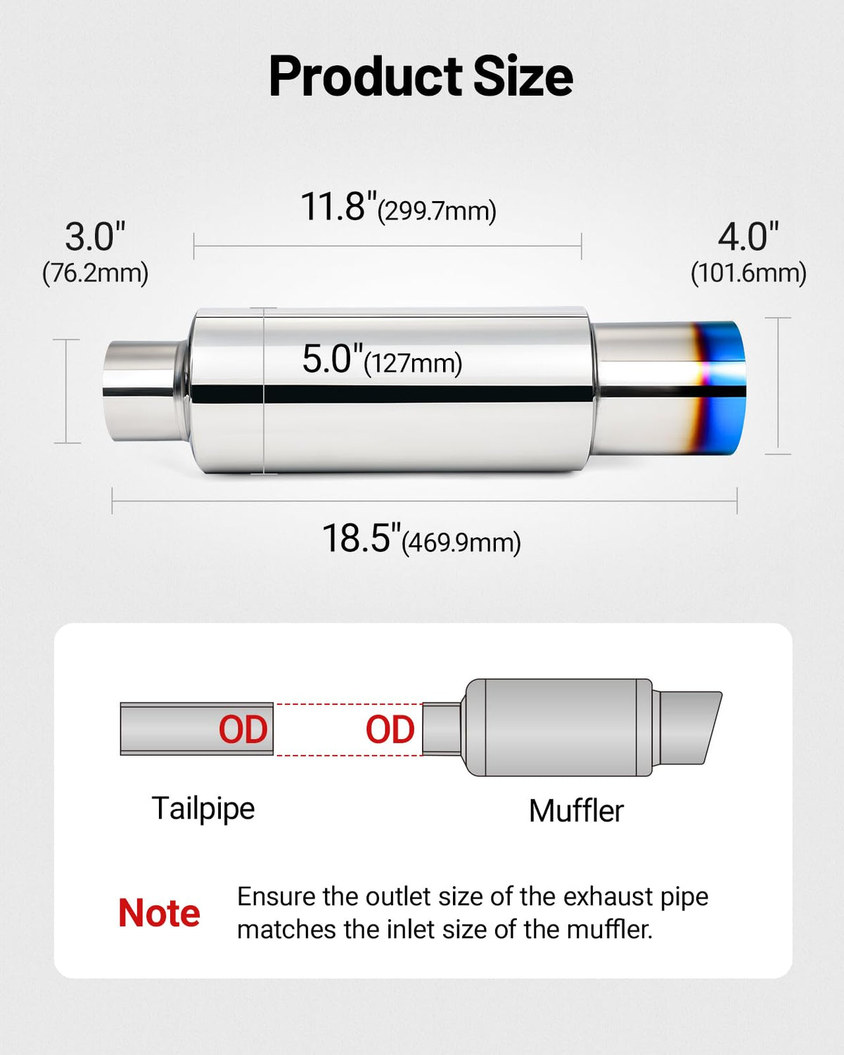 EVIL ENERGY is our brand, we 're a direct and professional manufacturer, one of greatest manufacturer and exporter in tuning parts include intake system, exhaust system, engine system, cooling system, interior and exterior parts. Accept customized order with minimum quantity. Vital for fuel economy and the environment, your vehicles exhaust system carries away harmful gases that are created during the combustion process. The exhaust system not only keeps dangerous gases like carbon monoxide, nitrogen oxides and hydrocarbons from entering the cabin but it also ''cleans up '' the gases before they are released into the environment. Make your card stand out from the crowd by installing this muffler as it will look beautiful and make your car sound better. Perfectly decorate the exhaust pipe of your car or motorcycle. Densely packed with premium, sound-absorbing cotton producing a low, deep tone, resonated to enhance sound. Straight-through muffler design reduces back pressure while absorbing sound waves. Used near the end of the exhaust system on a vehicle, work on the principle of destructive interference and absorption. FEATURES: Surface: mirror polished Material: Stainless steel Fit: Universal for 3-inch exhaust pipe Sound Dampening Stand out from crowd