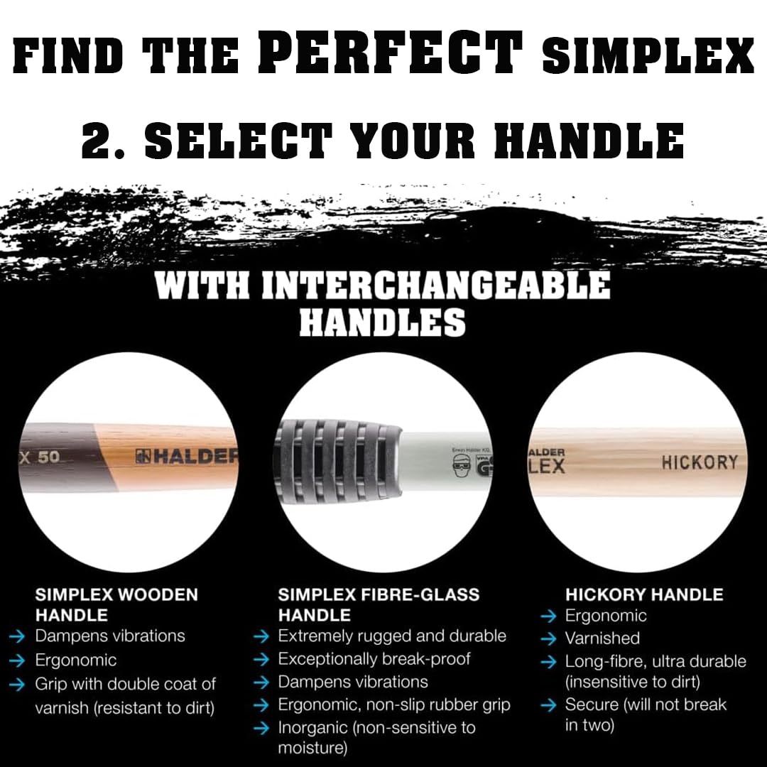 Q: Is the handle of the Halder Simplex hammer comfortable to use for extended periods?A: Absolutely. The hammer features a high-quality, ergonomically shaped wooden handle that is vibration-damping and comes with a double coat of varnish, ensuring a comfortable grip and resistance to dirt for prolonged usage.