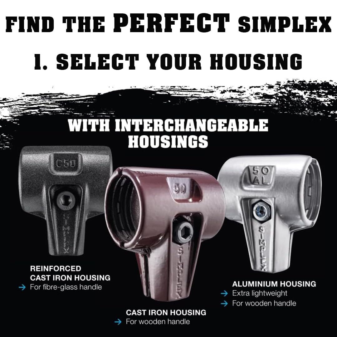 Q: What sizes are available for the Halder Simplex Soft-Face Hammer?A: The Halder Simplex Soft-Face Hammer is available in sizes ranging from D30mm to D80mm, and it can also be purchased as a sledge hammer or in size D60mm with a rubber insert, providing versatility for different tasks.