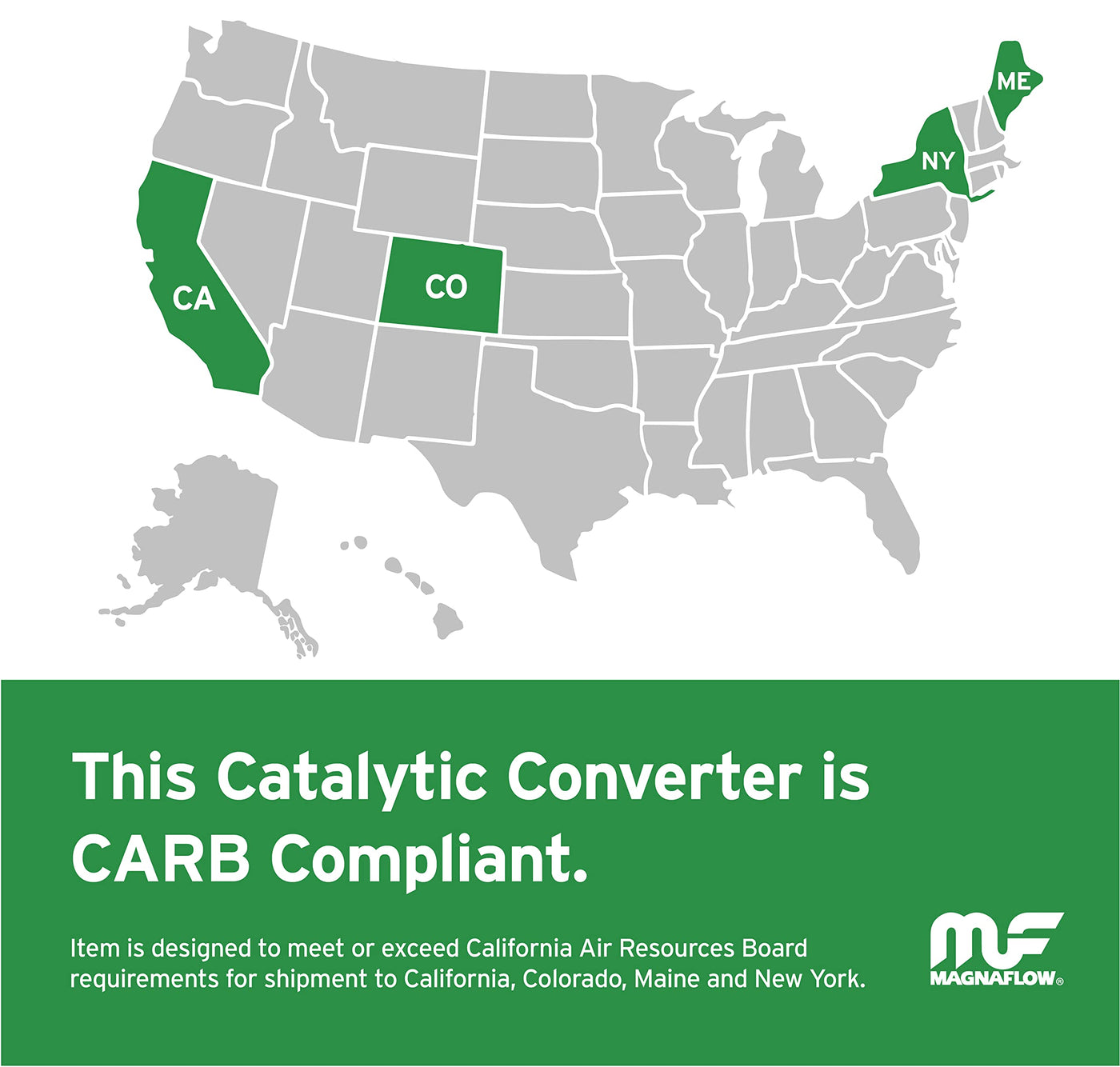 Q: Is the MagnaFlow Catalytic Converter 5531441 compliant with California emissions standards?A: Yes, the MagnaFlow Catalytic Converter 5531441 is California Grade and CARB compliant, meaning it meets the stringent emissions standards set by the California Air Resources Board, as well as those of other states that adhere to these regulations.