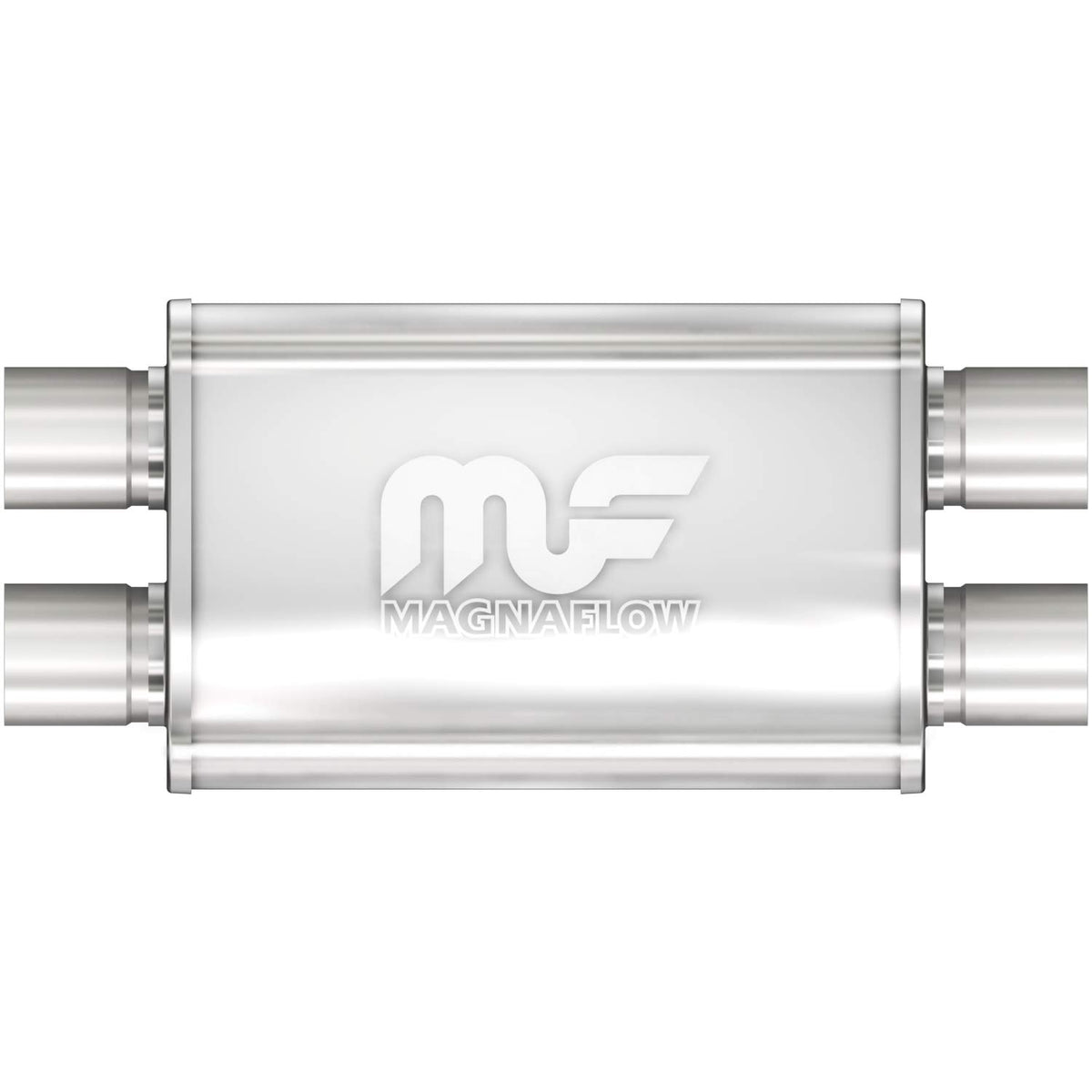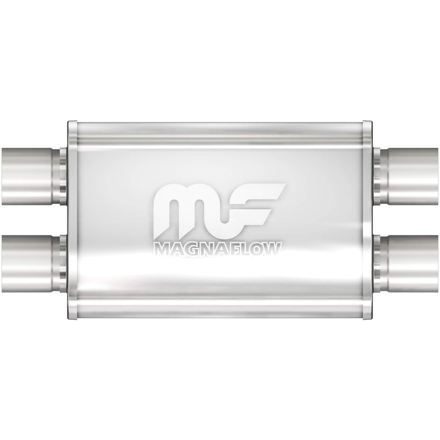 SIGNATURE MAGNAFLOW SOUND - The 4 x 9 Oval body of muffler 11385 is engineered to deliver the deep, resonating sound that MagnaFlow mufflers are famous for. | DYNO-PROVEN PERFORMANCE - Extensive dyno testing is used to ensure that this 4 x 9 Oval muffler increases engine power and performance by improving the flow dynamics and evacuation of exhaust gases. | OPTIMAL ARCHITECTURE & CONSTRUCTION - The internal architecture of this muffler features a straight-through perforated core with two-stage acoustic packing which maintains the velocity of exhaust flow while generating a smooth, deep exhaust tone. Proudly made in the USA. | UNIVERSAL FITMENT - Universal design enables custom muffler placement and orientation to meet the particular spacing and mechanical requirements of your vehicle. Professional installation is highly recommended. | LIMITED LIFETIME CONSTRUCTION WARRANTY - Performance that lasts. Enjoy worry-free ownership knowing that you're backed by MagnaFlow’s limited lifetime construction warranty.