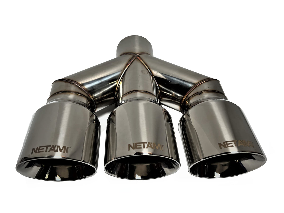 NETAMI 3'' Inlet to 4'' Triple Outlets Stainless Steel Exhaust Tip Dual Wall Chrome Polished