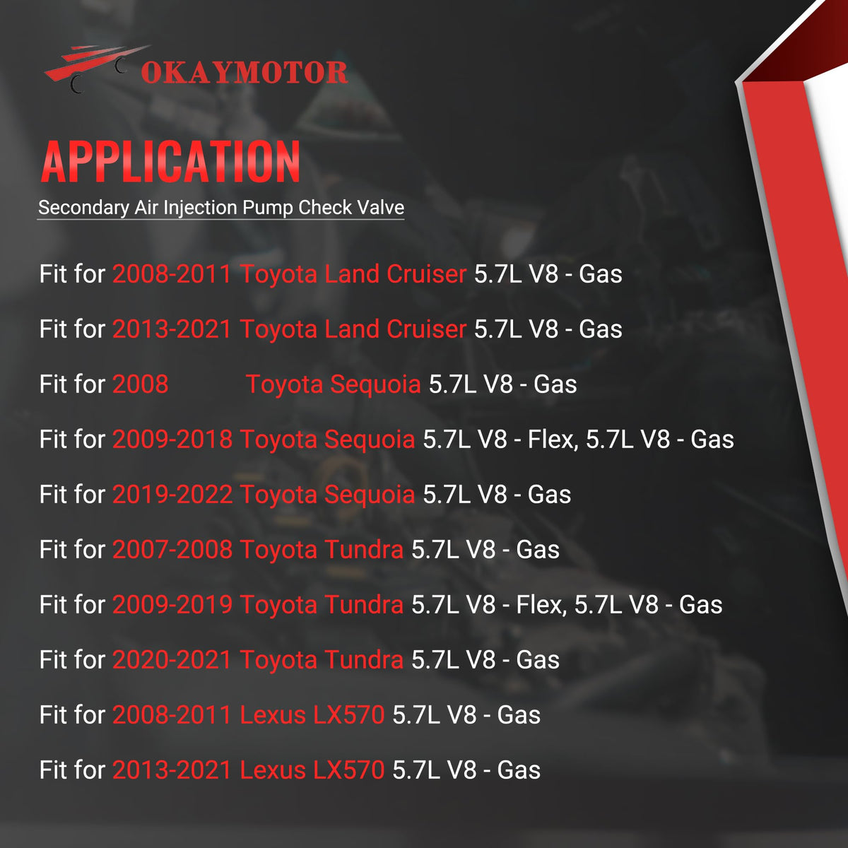 Okay Motor Secondary Air Injection Pump Check Valve For 2007-2021 Toyota Tundra Land Cruiser Sequoia Lx570 5.7L 911-643 25701-38