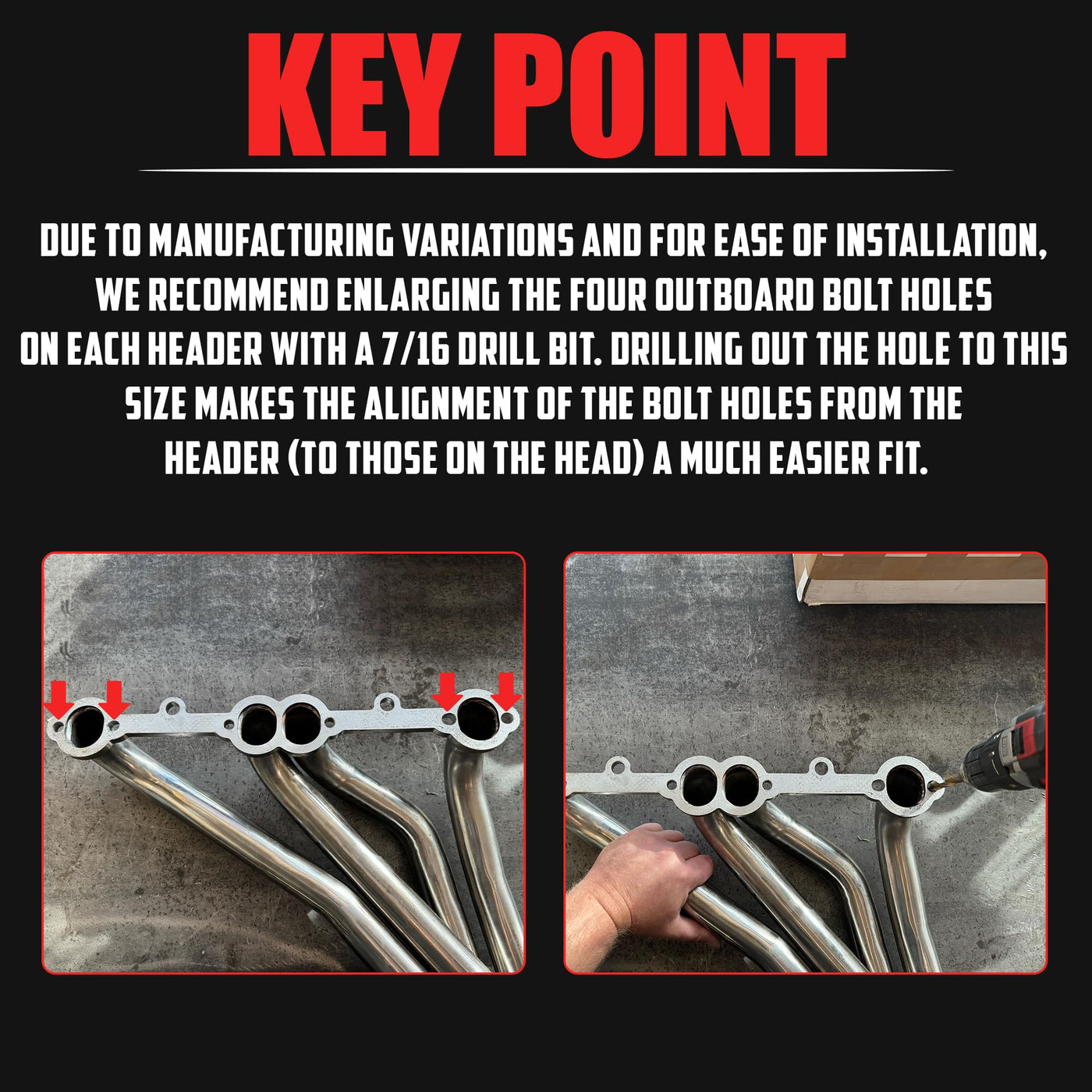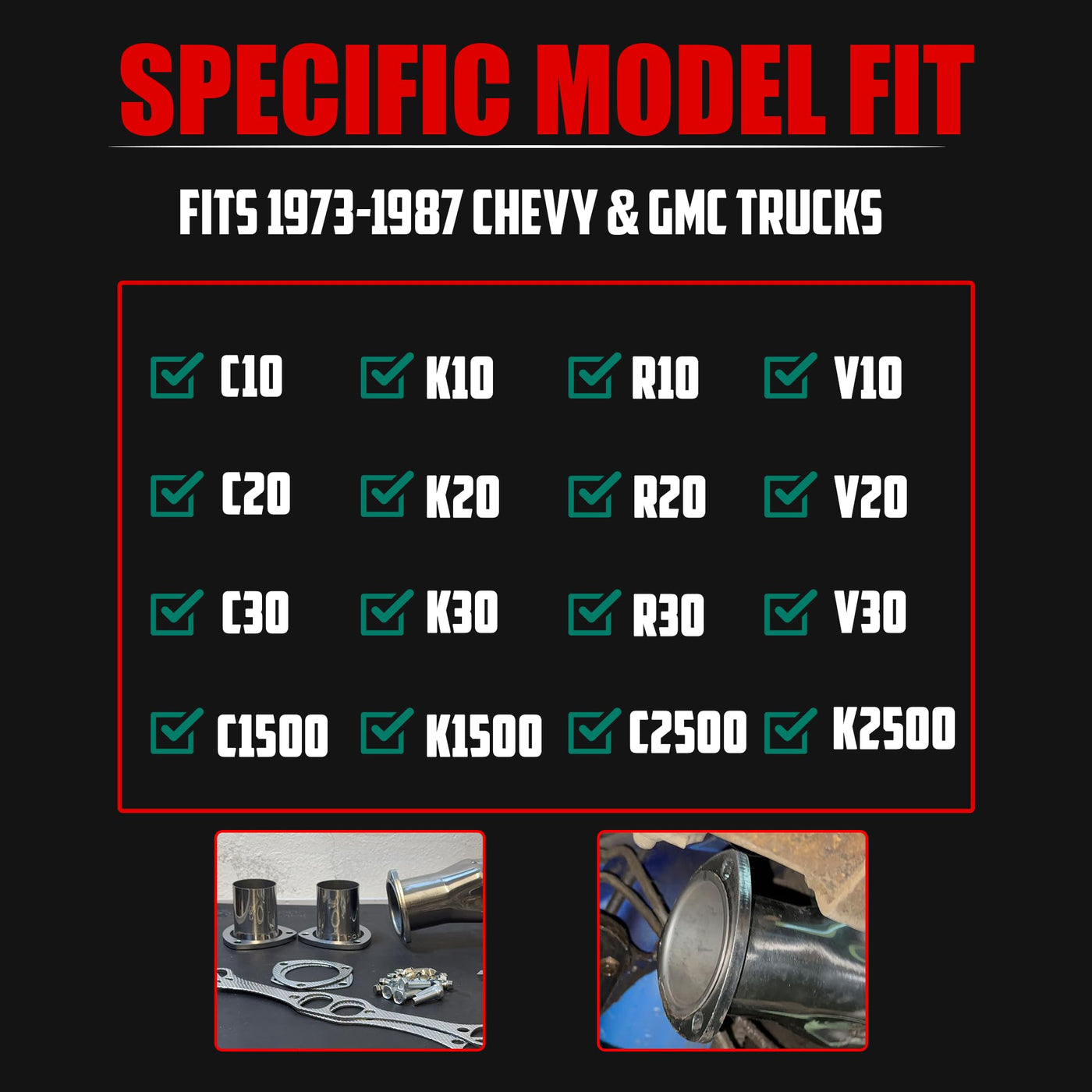 Certified Automotive Experts Polished Stainless Steel Long Tube Headers - Part #GW-CH-EH002-2 Upgrade your 1973-1987 Chevy/GMC Square Body truck with these polished stainless steel long tube headers. Designed for Small Block Chevy (SBC) engines, these headers improve exhaust flow, increase horsepower, and enhance performance while providing a durable, corrosion-resistant finish. IMPORTANT INSTALL NOTES - READ BEFORE PURCHASING ? Header Spark Plugs & Heat Shields REQUIRED for Proper Fitment To ensure proper clearance, you MUST use Header Spark Plugs and plug wire heat shields. Standard spark plugs WILL have clearance issues. Recommended Spark Plugs: * Accel 0576S (Taper Seat) * Accel 0414S (Gasket Seat) Plug wire heat shields are also strongly recommended to prevent heat damage. ? Failure to use the correct spark plugs may result in fitment issues and difficulty during installation. ? Fitment for 2WD & 4WD Trucks (Minor Mods Required for Stock-Height 4WDs) These headers fit 2WD and 4WD models. * Stock-Height 4x4 Trucks Require Minor Modifications - On stock-height 4WD trucks without a lift kit, you must trim the excessive length of two bolts on the left front leaf spring (everything that sticks through the nut) to ensure adequate clearance between these bolts and the header collector area. * Lifted 4x4 Trucks Will NOT Have Clearance Issues. Vehicle Compatibility ? Fits the Following Chevy/GMC Models: * C10, K10, C20, K20, C30, K30, R10, R20, R30, V10, V20, V30 - 1973 1974 1975 1976 1977 1978 1979 1980 1981 1982 1983 1984 1985 1986 1987 * Blazer, Jimmy, Suburban, C2500, K2500, C3500, K3500 (Square Body models only) - 1973 1974 1975 1976 1977 1978 1979 1980 1981 1982 1983 1984 1985 1986 1987 1988 1989 1990 1991 ? Compatible Engines: * Small Block Chevy (SBC) Gen 1 Engines (1955-1995) * Fits 265, 262, 283, 305, 307, 327, 350, and 400 SBC engines when installed in 1973-1991 Square Body pickups. Technical Specifications * Primary Tube OD: 1 5/8 * Collector Inlet Diameter: 3 * Collector Outlet Diameter: 2 1/2 * Polished Stainless Steel for superior durability and corrosion resistance Whats Included? * Gaskets * Header Bolts * Collectors Why Choose Certified Automotive Experts Long Tube Headers? * Designed Specifically for Square Body Chevy & GMC Trucks * Enhanced Exhaust Flow for More Power & Performance * Durable Polished Stainless Steel for Long-Lasting Quality * Includes Hardware for a Hassle-Free Install Buy with Confidence! ? Make sure you use the correct header spark plugs & wire heat shields to avoid fitment issues. ? Check your trucks ride height if installing on a 4x4 - stock-height models require minor modifications for proper clearance. ? Verify engine compatibility before purchasing. Ready to upgrade your exhaust system? Click Add to Cart now!