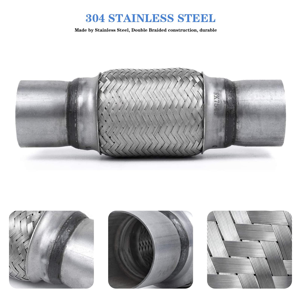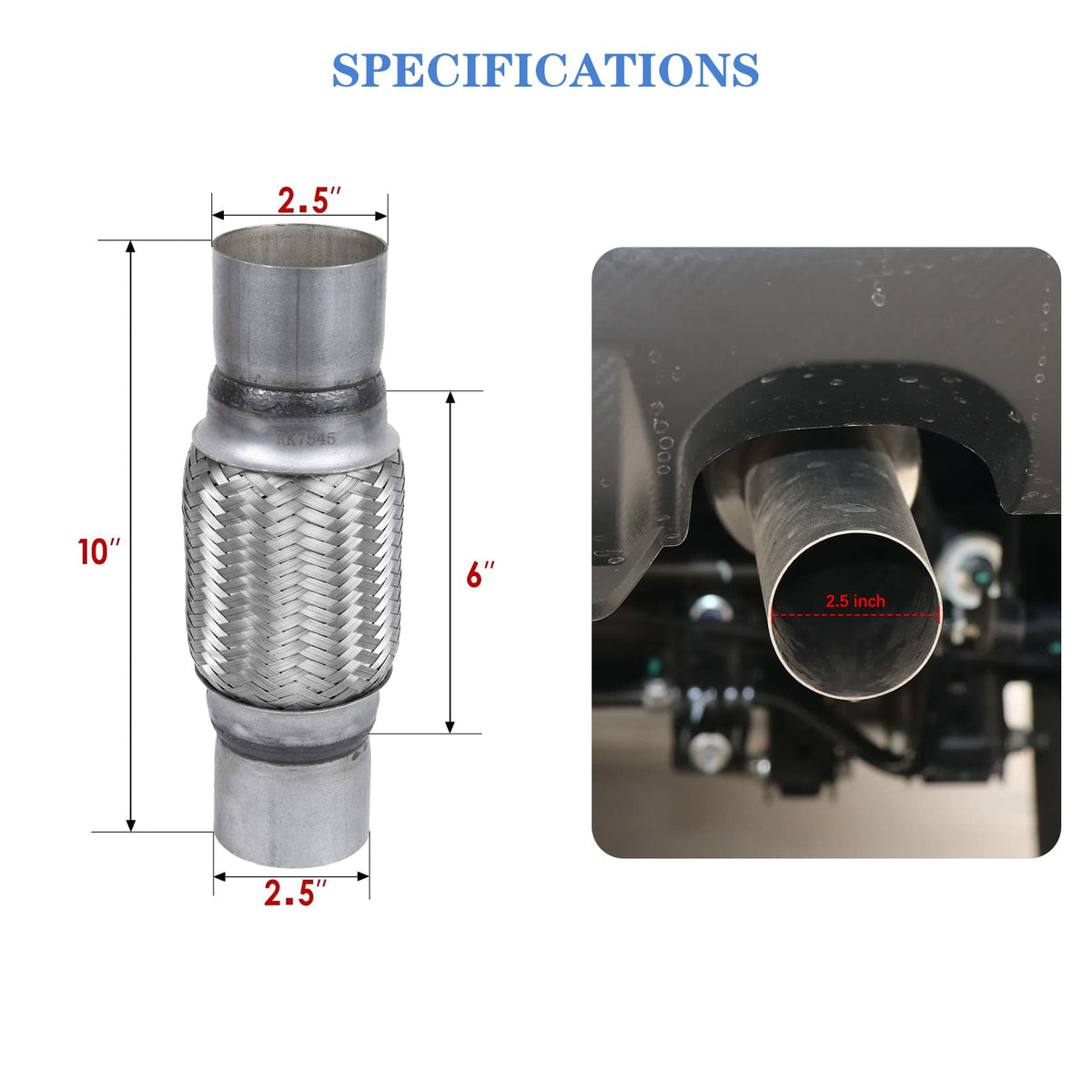 RP Remarkable Power, 2 pack 2.5 inch Inlet Exhaust Flex Pipe,2.5 ID x 10 inch Length Flexible Exhaust Tube,Stainless Steel Double Braid Heavy Duty Universal fit Flex Muffler Pipe RK7545 Replacement