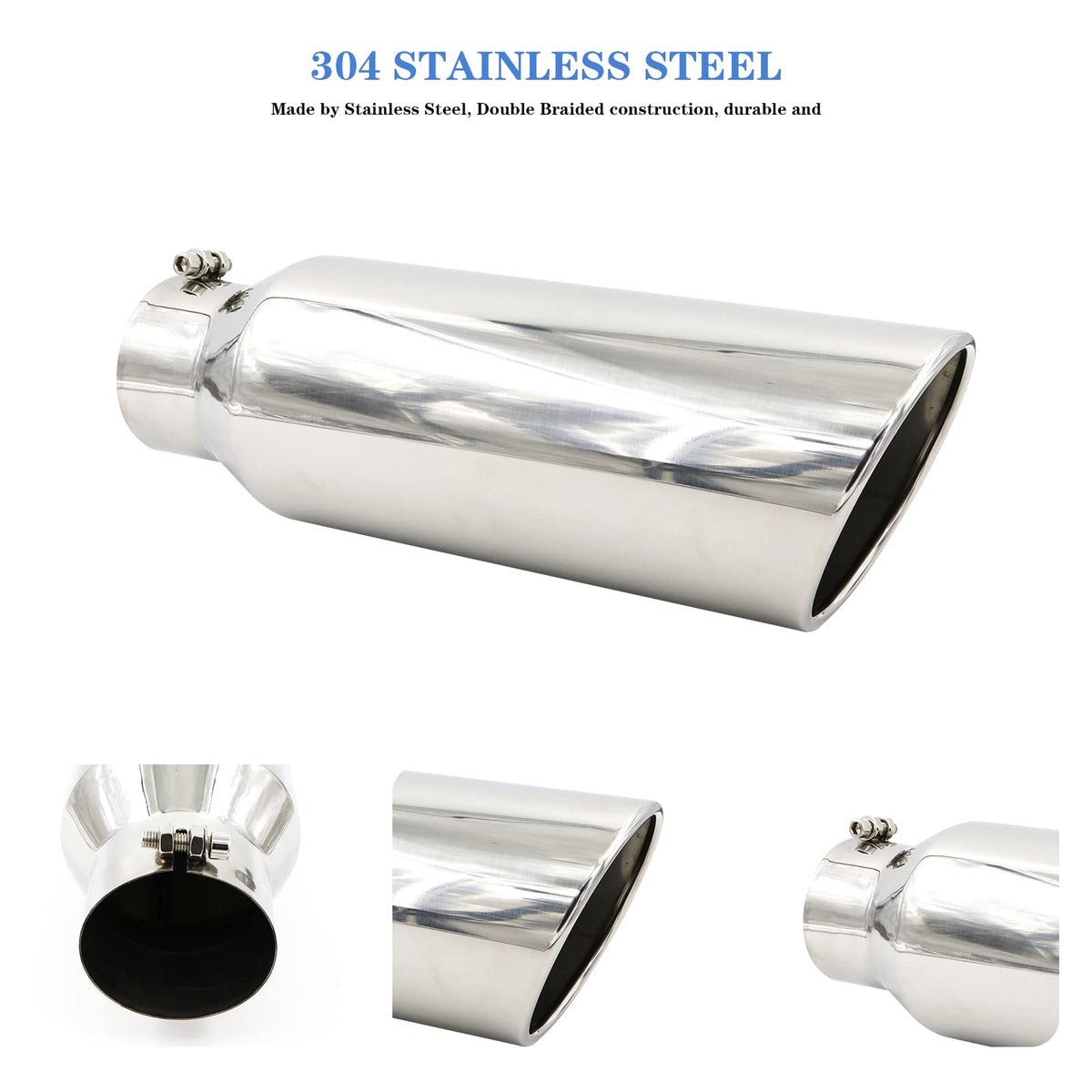 Rp Remarkable Power, 4'' Inlet 6'' Outlet - 18'' Long Stainless Steel Rolled Edge 20 Degree Exhaust Tip Diesel Ext23 2 Pack