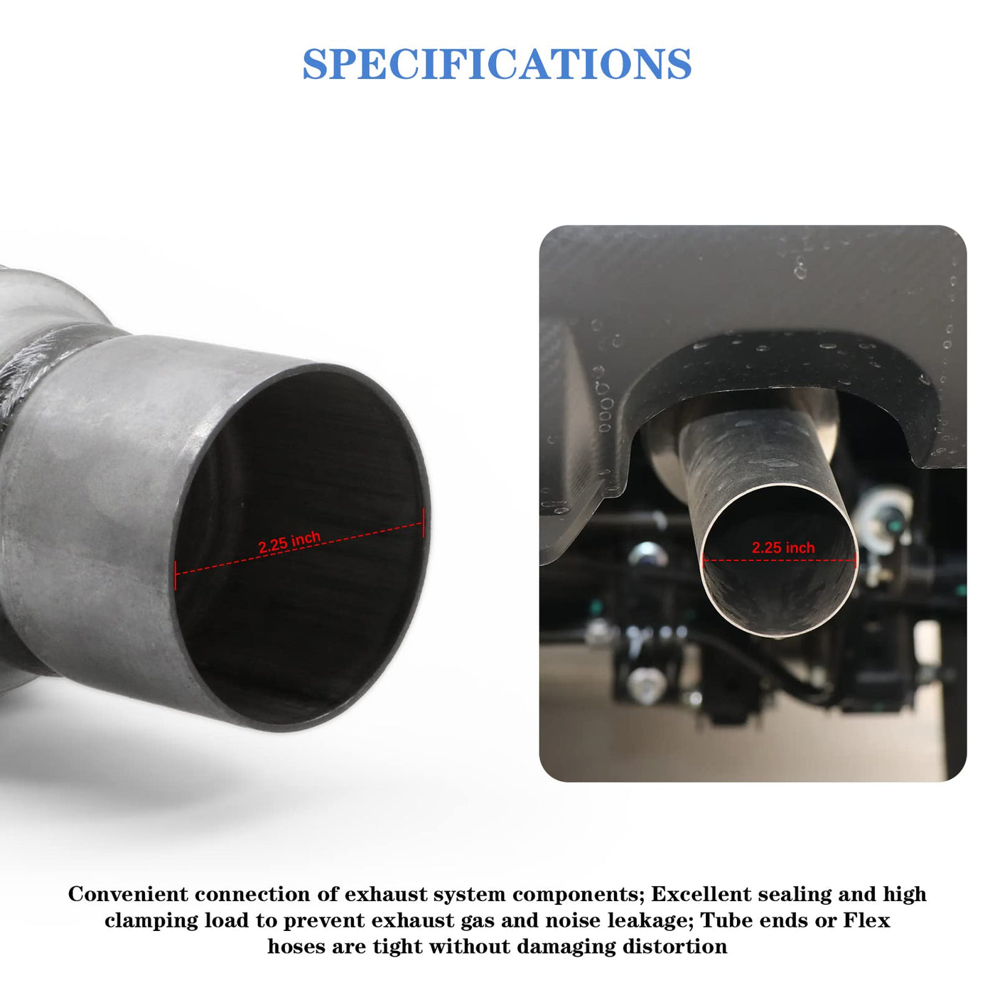 There is no instruction manual; professional installation is highly recommendedFitment: - Universal For 2.25'' inlet/outlet diameter Flex Pipe .? Product Specification: - Inlet/ Outlet Diameter:2.25''ID,2.375''OD - Body length: 4 inch- Overall Length: 8 Inch(2 extension length)- Style: Directly Weld On- Material: Stainless Steel, Double Braided construction- Durable and Corrosion and Water Resistant; Exquisite workmanship90 Days Warranty and 30 days free replacement or return/refund service. If you have any questions, please contact us. Thanks.?? Package Included: 1 x Flex PipeInstallation: Weld on?? How to Install the Flex Pipe1. Grab the bolts holding the flex pipe to the flange on the muffler with a wrench. Turn counterclockwise to remove them. Then pull the flex pipe out of the flange.2. Remove the clamp holding the flex pipe to the exhaust downpipe.3. Pull out the old gasket that sat between the flex pipe and the muffler flange. Then clean out the flange.4. Hammer out any dents from the end of the exhaust downpipe. Loosen the nuts holding the muffler and downpipe. 5. Coat a new muffler gasket with exhaust sealer, then place it in the muffler flange and fit the end of the new flex pipe over it.6. Coat the end of the downpipe with more exhaust sealant and place the free end of the new flex pipe over it. Adjust the position of the muffler and downpipe until the flex pipe is straight but free of tension.7. Thread bolts through the holes in the end of the flex pipe attached to the muffler flange. Tighten them to secure the pipe to the flange.8. Place a new clamp around the flex pipe where it meets the downpipe and tighten it. Retighten the bolts holding the muffler and downpipe and cut any plastic ties that are wrapped around the flex pipe.