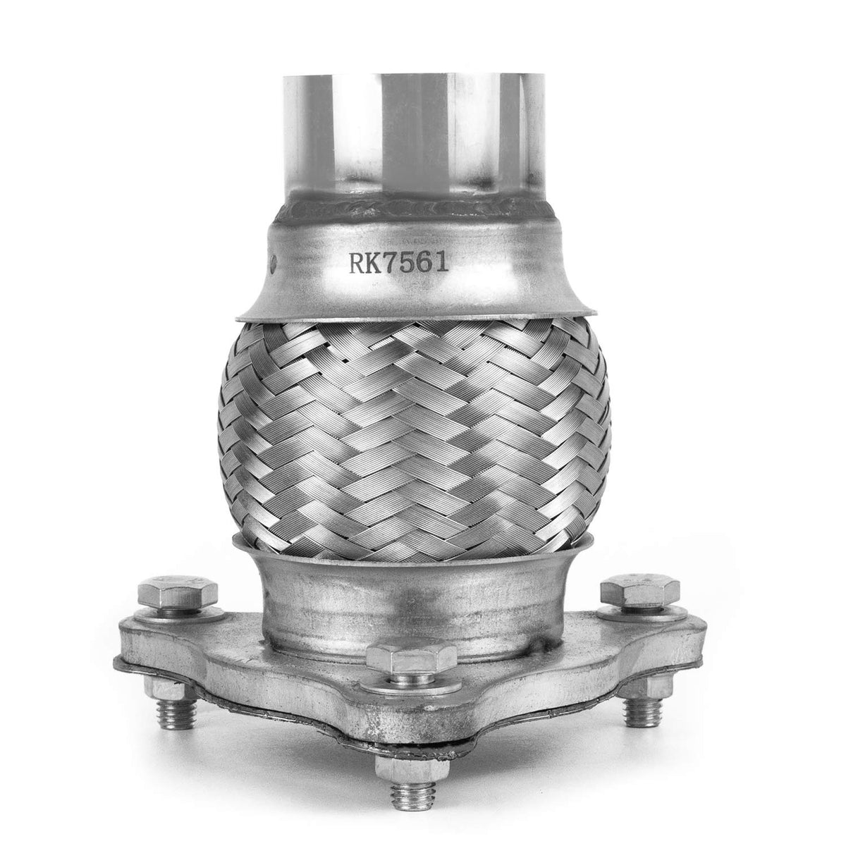 Q: What materials are used in the construction of this flex pipe?A: The RK7561 flex pipe is made from high-quality stainless steel featuring a double braided construction. This design not only enhances durability but also ensures resistance to corrosion and water damage, making it a reliable choice for exhaust repairs.