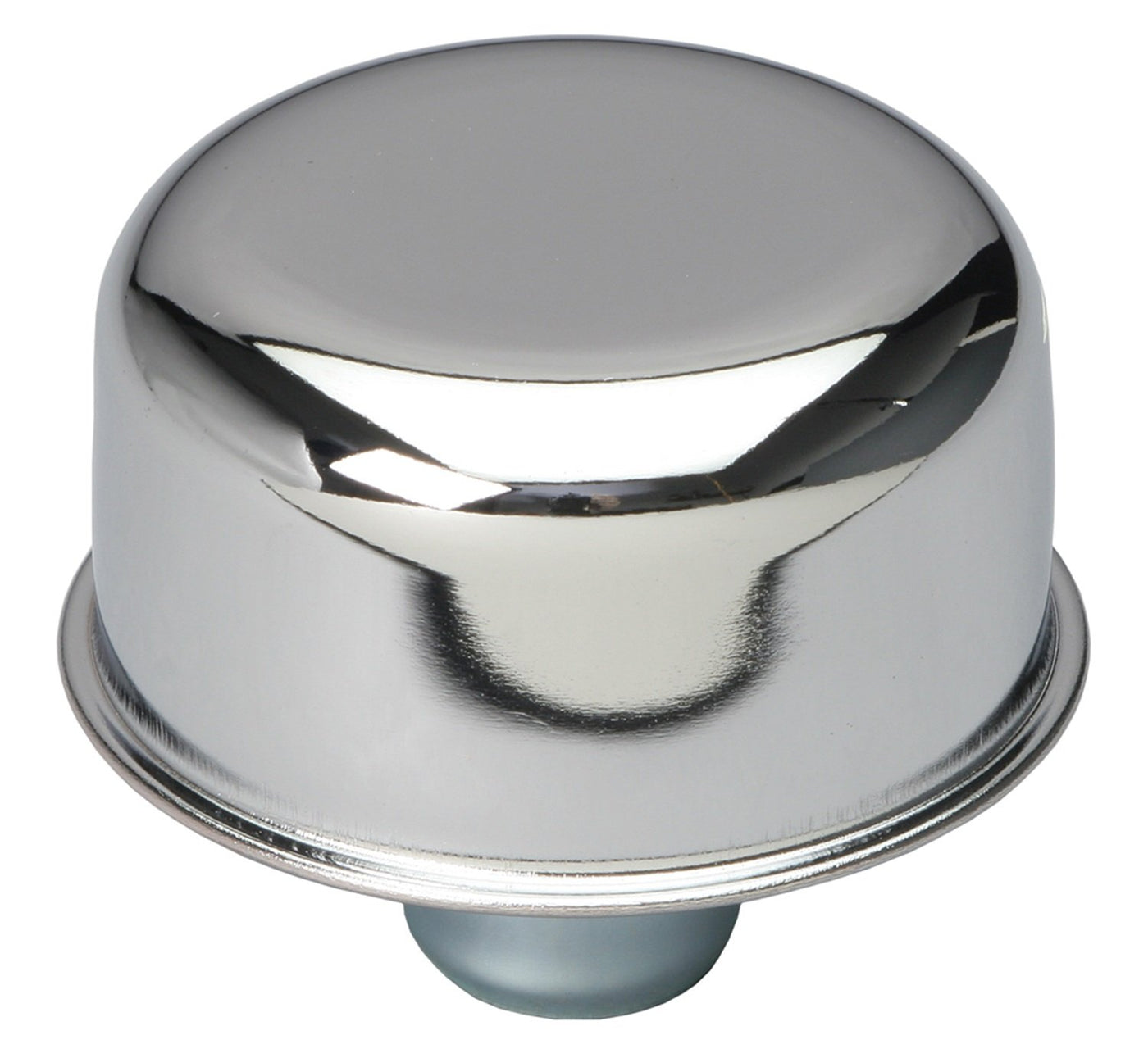 Q: What material is used in the construction of the Trans-Dapt 4870 breather cap?A: The Trans-Dapt 4870 Chrome Push-In Breather Cap is made of durable steel, ensuring longevity and resistance to wear in various automotive environments.