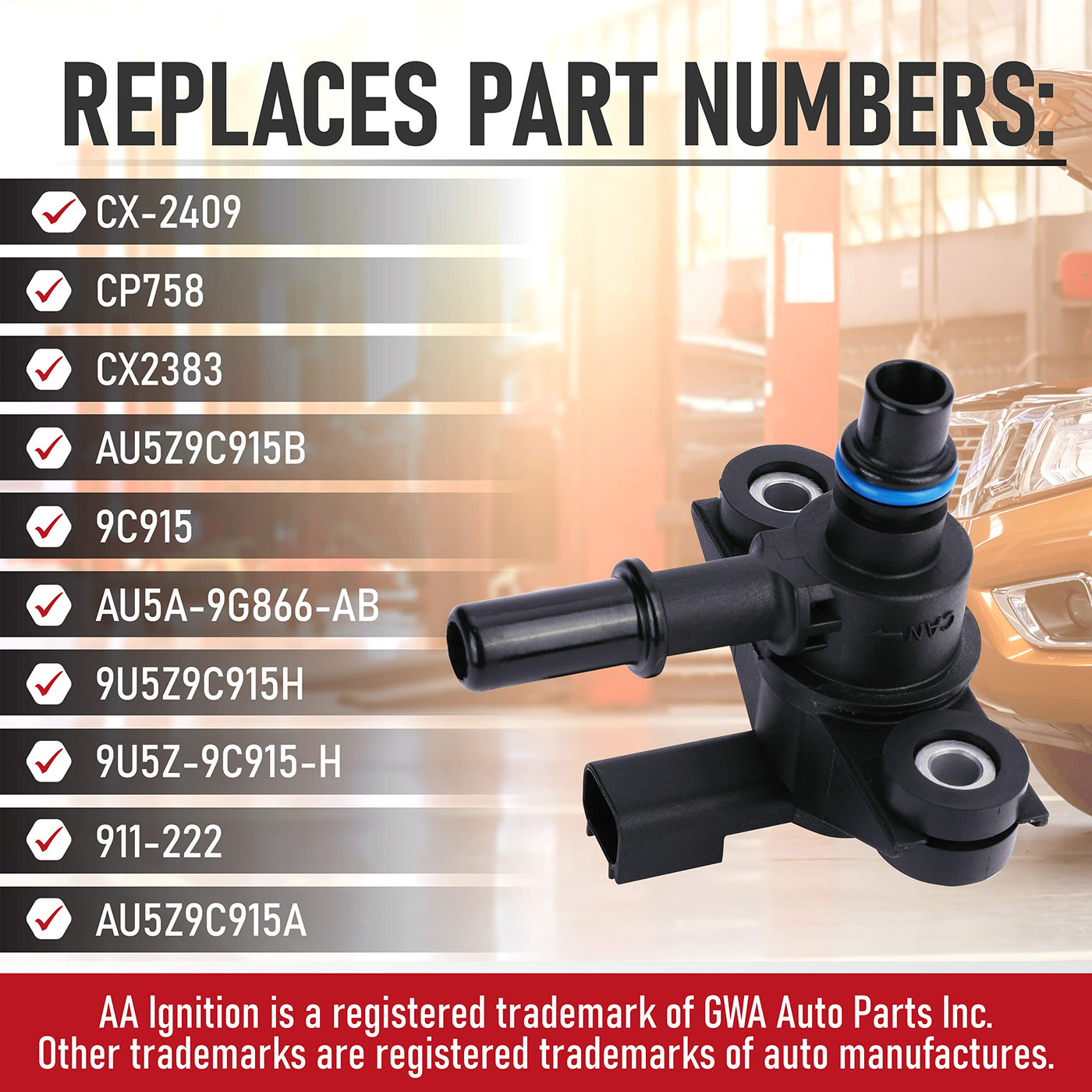 Q: Is this Vapor Canister Purge Valve an OEM part?A: No, this Vapor Canister Purge Valve is not a genuine OEM part. It is a high-quality compatible replacement manufactured by AA Ignition, designed to meet or exceed OEM specifications for fit and performance.