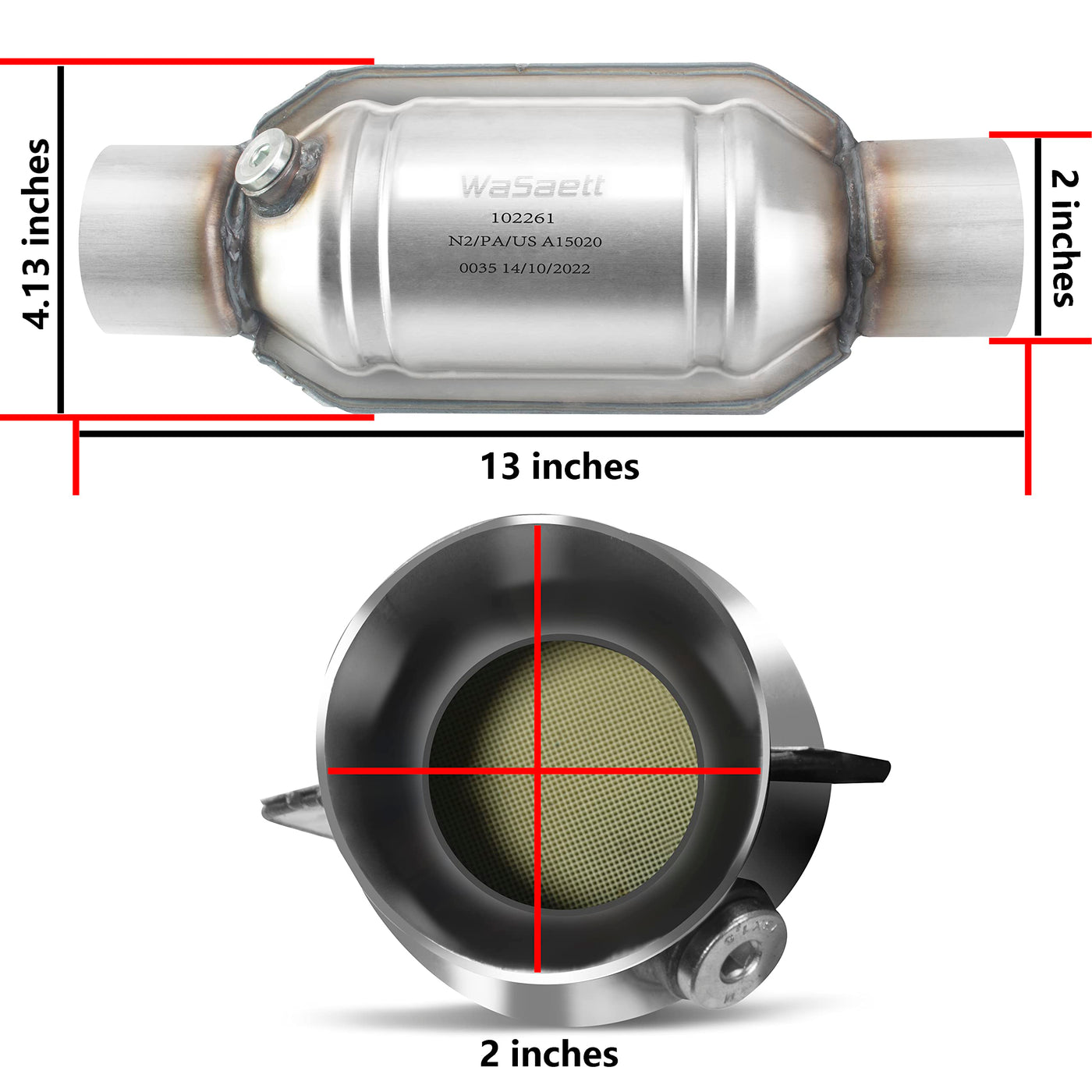 Wasaett 2' Catalytic Converter Universal 2 Inch Inlet/Outlet Cat Converter With O2 Port And Heat Shield (Epa Compliant)