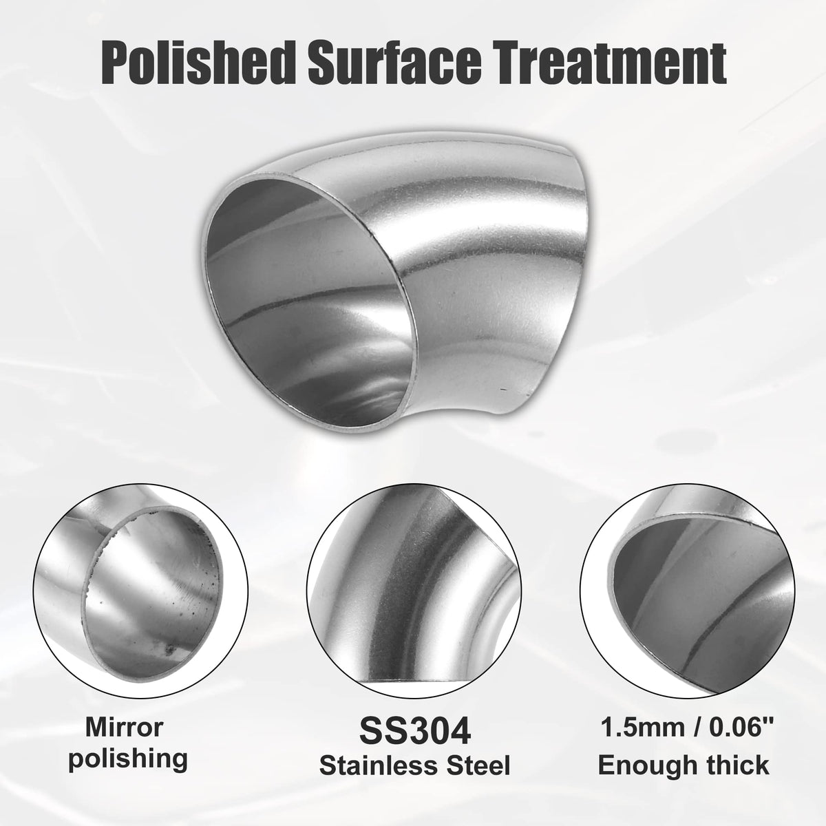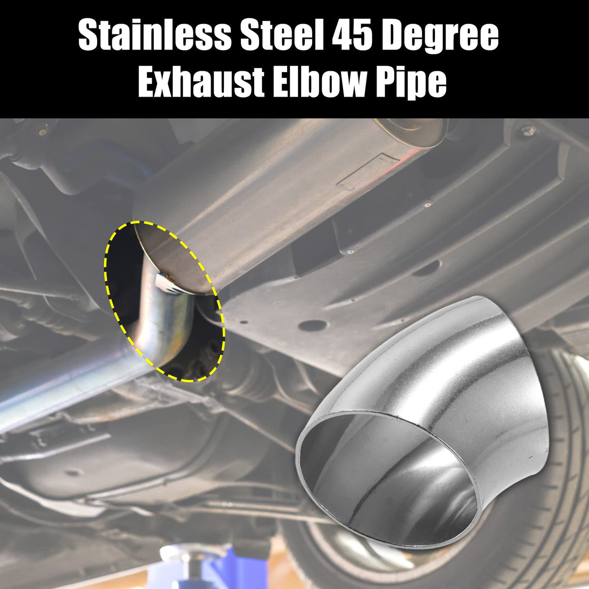 X Autohaux 4 Pcs Od 2.5 Inch 45 Degree Ss304 Stainless Steel Bend Tube Exhaust Elbow Pipe For Car Modified Exhaust System 2.5' Piping Silver Tone