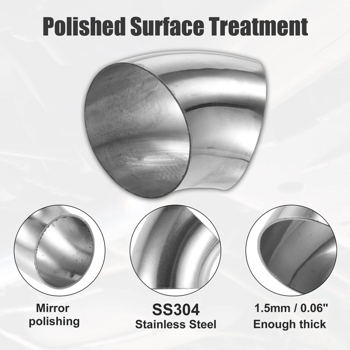 X Autohaux 4 Pcs Od 3 Inch 45 Degree Ss304 Stainless Steel Bend Tube Exhaust Elbow Pipe For Car Modified Exhaust System 3' Piping Silver Tone