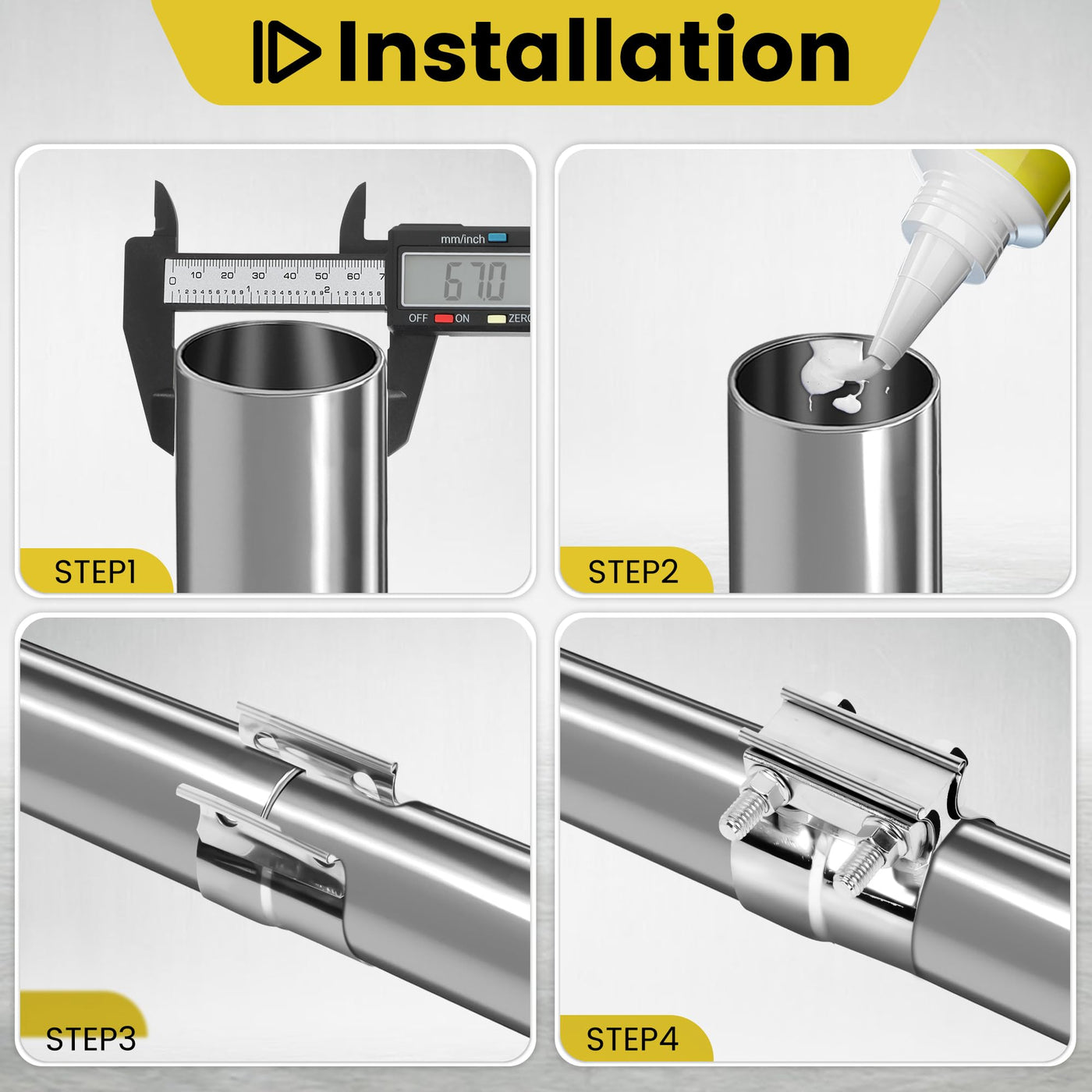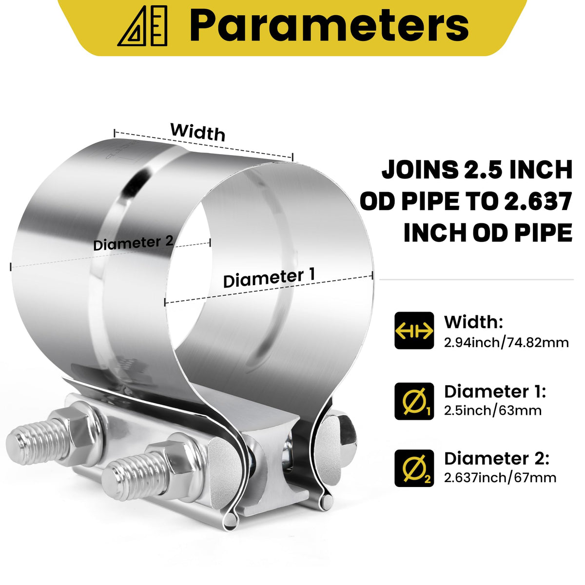 Zehclp 1 Pcs Exhaust Clamp 2 1/2 Butt Joint 304 Stainless Steel Band Lap Joint Band Clamp Stainless Steel For Pipes Catalytic Co