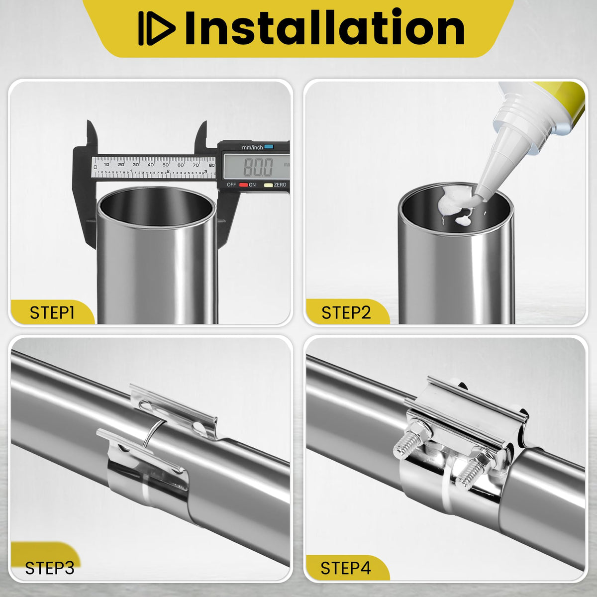 Zehclp 1 Pcs Exhaust Clamp Butt Joint 304 Stainless Steel Band Lap Joint Band Clamp Stainless Steel For Pipes Catalytic Converte