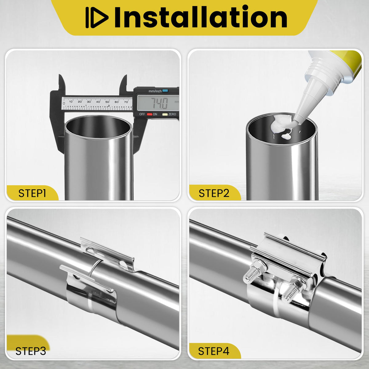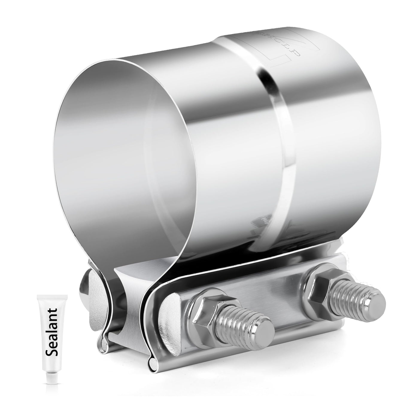 Zehclp 2 Pcs Exhaust Clamp 2 3/4 Butt Joint 304 Stainless Steel Band Lap Joint Band Clamp Stainless Steel For Pipes Catalytic Co
