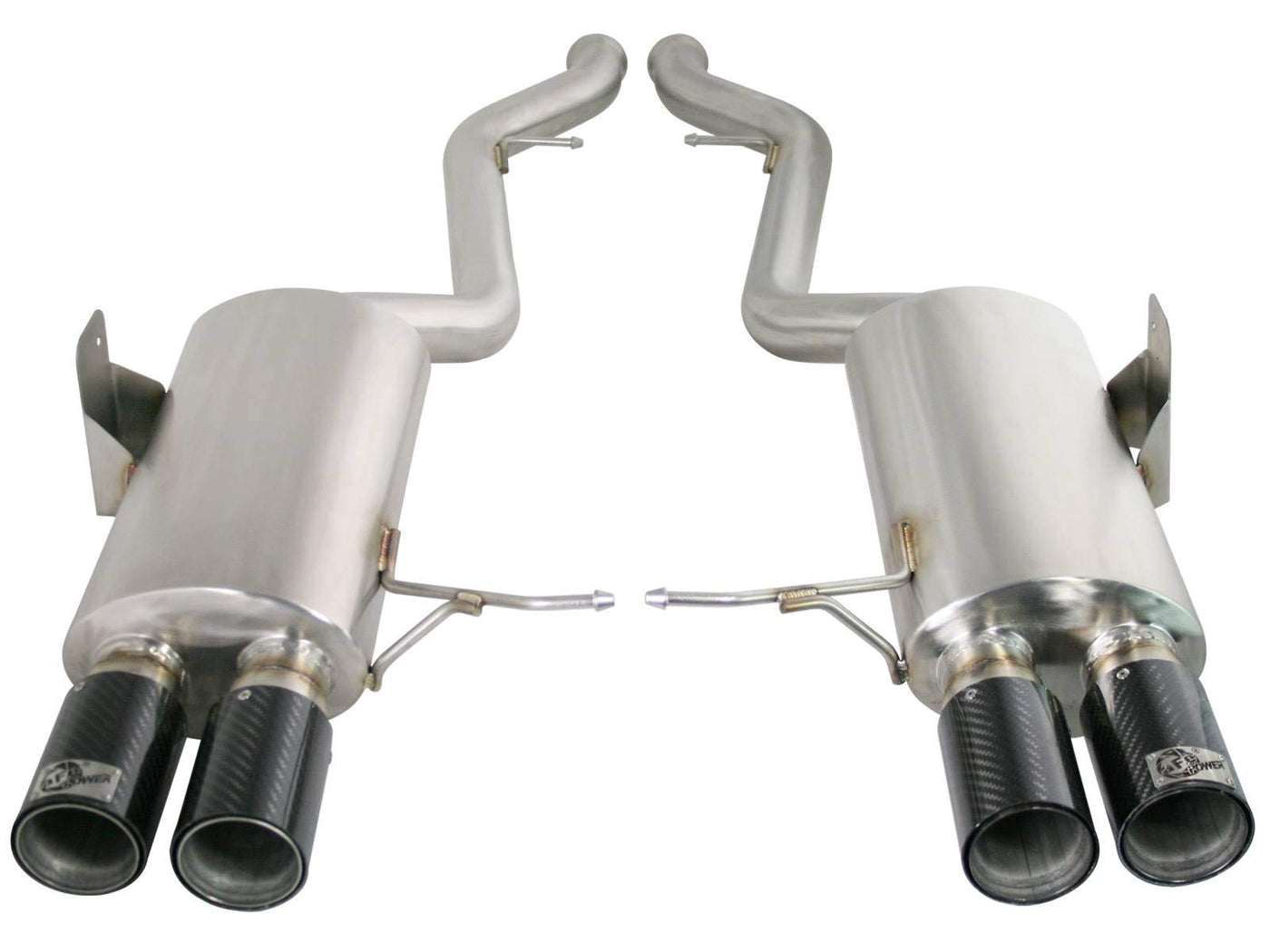 This system is constructed of 2.50 inches diameter, mandrel bent, TIG-welded, 304 stainless steel, brushed finish tubing and uses all factory mounting locations for an approximate 1 hour install time. In recent testing, this exhaust system produced 12 horsepower and 11 pounds X feet of torque. This race inspired system is 15 pounds lighter than the factory exhaust system and utilizes race tested and proven 3 inches carbon fiber quad tips to withstand extreme temperatures and weather conditions. 304 stainless steel: This unique exhaust system uses 2.5 inches diameter 304 stainless steel that is TIG-welded and has a hand brushed finish. Carbon fiber quad tips: Race tested and proven, carbon fiber quad tips are used for weight savings and a sporty look. Dual mufflers: The dual mufflers consist of a single in, dual out, free flowing design, giving an aggressive sound at high RPM's, yet maintaining a shuttle tone at cruising speeds. Uses OE mounting locations: This system uses factory mounting locations providing stability and hassle-free installation with no modifications necessary. All aFe exhaust systems are engineered and manufactured in Corona, California manufacturing facility.