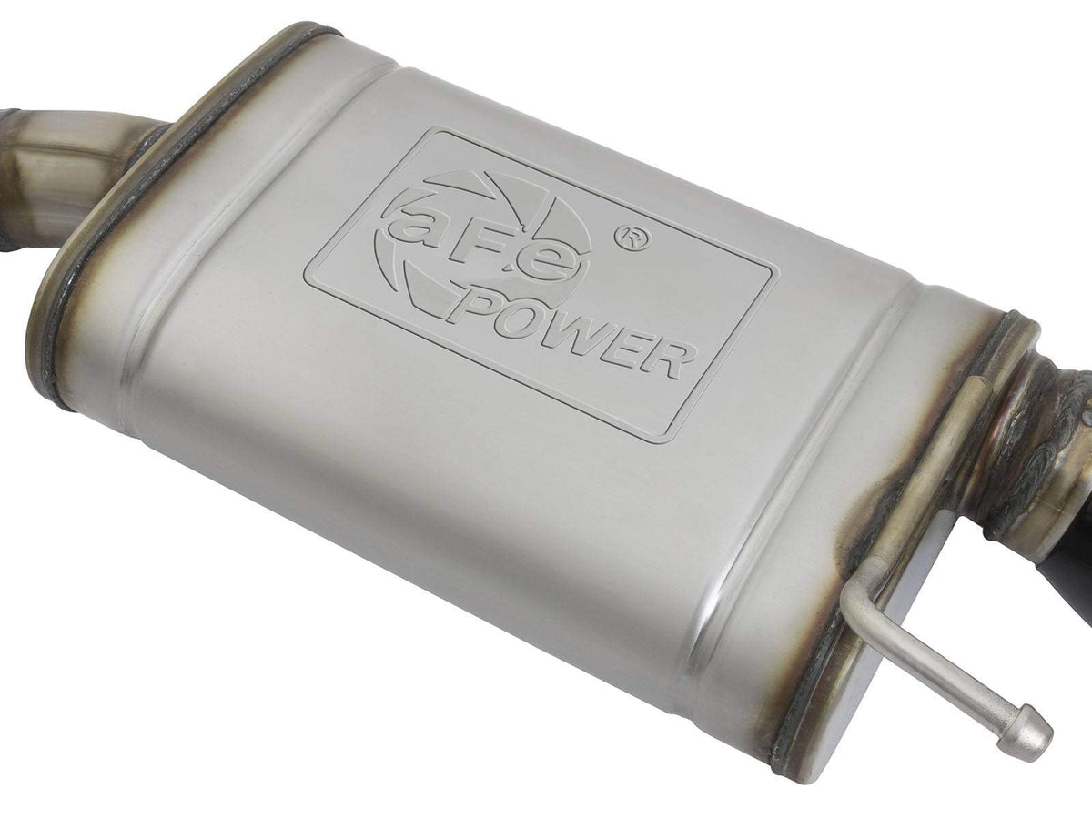 Q: How does the dual high-flow muffler design affect performance?A: The dual high-flow mufflers in the aFe exhaust system are engineered to improve exhaust flow, resulting in enhanced performance across the power band. This design helps to unleash additional horsepower and torque while maintaining an aggressive sound.