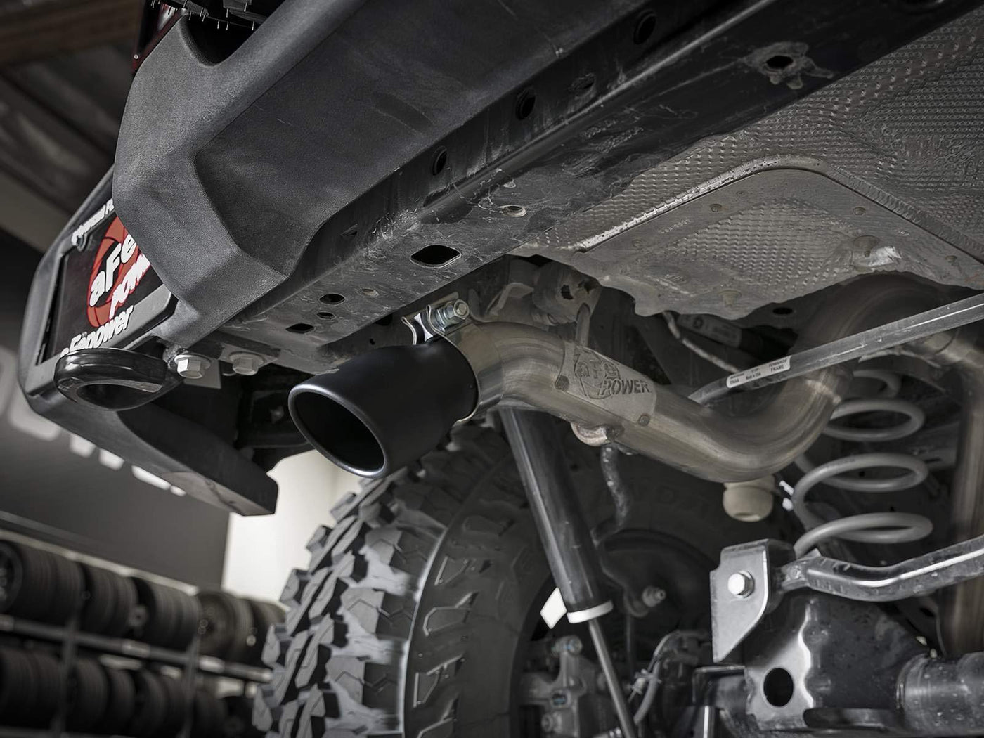 Q: How does the Hi-Tuck design benefit off-road driving?A: The Hi-Tuck design of the tailpipe elevates the exhaust system for extra clearance, which is essential for off-roading. This design helps prevent damage from obstacles on the trail, ensuring that your exhaust system stays protected during rugged adventures.