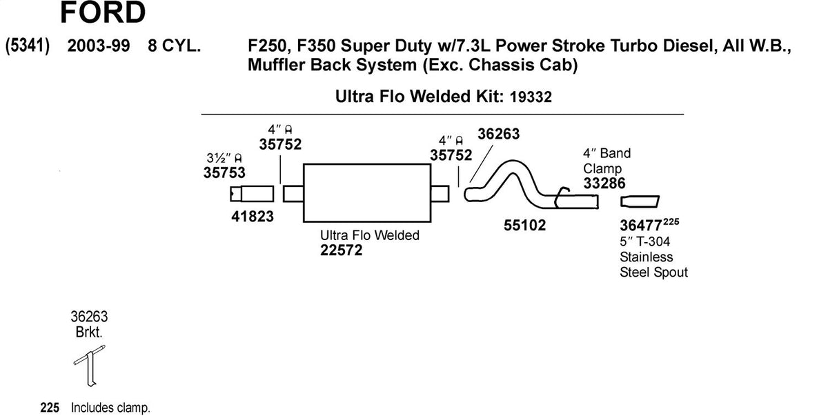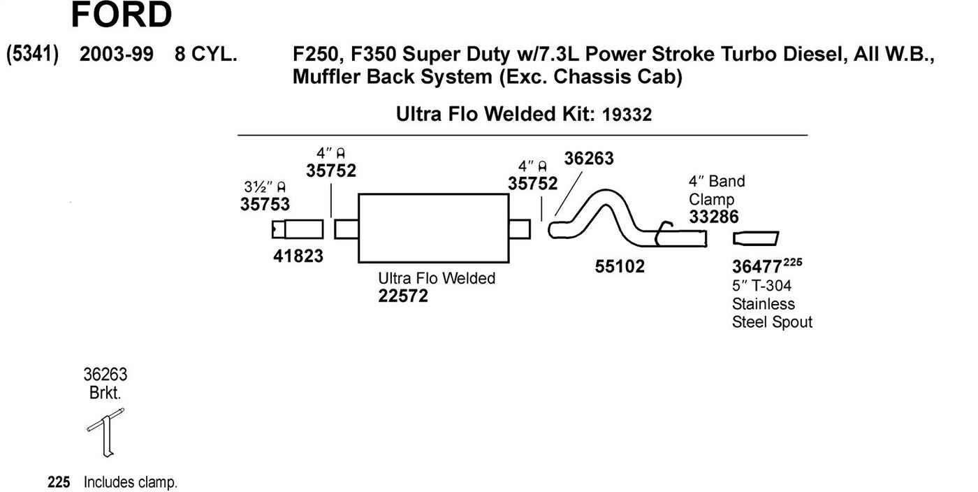 Q: What vehicles are compatible with the Dynomax 55102 Exhaust Tail Pipe?A: The Dynomax 55102 Exhaust Tail Pipe is designed to fit 1999-2002 Ford F-250 Super Duty and 1999-2002 Ford F-350 Super Duty models. Always verify your vehicle's compatibility by checking the year, make, model, engine, and trim before purchasing.