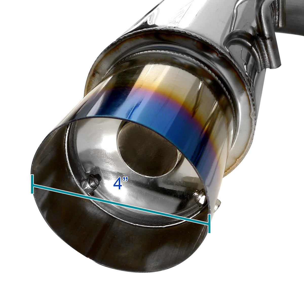 Q: What materials are used in the construction of this exhaust system?A: This exhaust system is made of high-quality full T-304 stainless steel, featuring a dual titanium tip that enhances durability and aesthetic appeal.