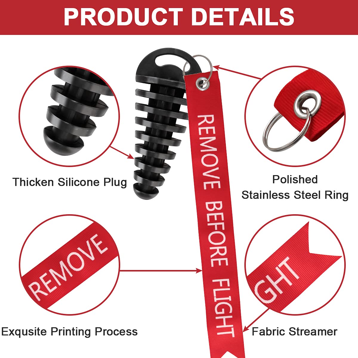 Q: How do the streamers help in using the wash plugs?A: The included red streamers, labeled 'remove before flight', serve as a visual reminder to remove the wash plugs before starting the engine, preventing potential damage.