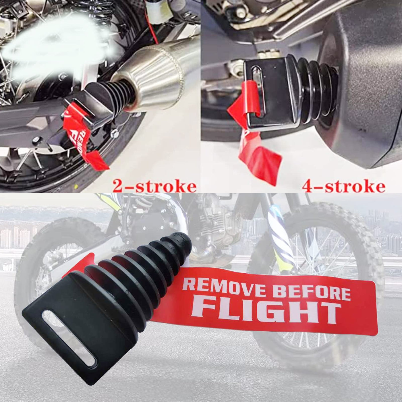 Q: Is there a visual indicator that the wash plug is in place?A: Yes, the exhaust wash plug comes with a red streamer that has 'REMOVE BEFORE FLIGHT' printed on it, providing a clear visual reminder to remove the plug before operating your motorcycle.