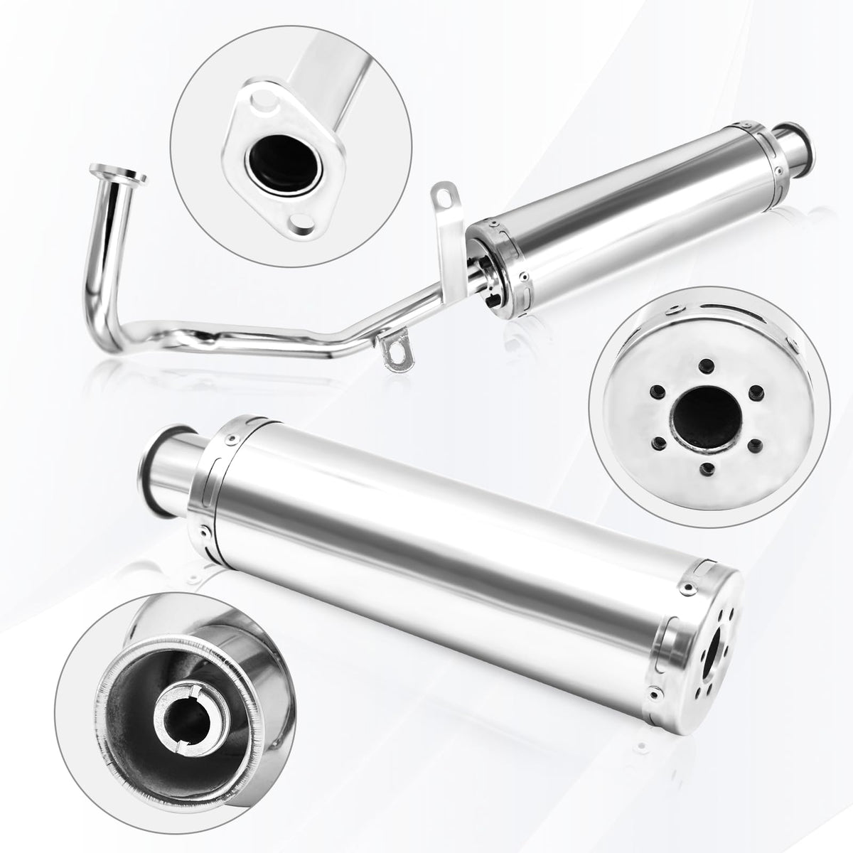 Wai Danie Motorcycle Exhaust Muffler Scooter Performance Exhaust Stainless Pipe Compatible with GY6 50CC 80CC 100CC Scooter QMB139 Motorcycle Exhaust Muffler Scooter Performance Exhaust Stainless Pipe For GY6 50CC 80CC 100CC SCOOTER(QMB139) High Quality Fearture: Potentially add more performance, speed and power to your bike with this high performance exhaust pipe Also provides a stylish look and a deeper exhaust tone Muffler is approximately 3.5'' in diameter x 12'' long (not including the exhaust tip). Fitment: Compatible with on many models of GY6 Scooters and Mopeds Four Stroke 50cc with the GY6 QMB139 series motors. Comes with brackets welded to the pipe Compatible with the GY6 application. (some modification may be required). It will not just ''bolt on'' to every scooter model. You may need to bend the brackets or make other modification to make it fit. Please Note: All head pipes and brackets are chrome plated carbon steel. ?Seamless fit? Made to original standards, so you can order it directly to replace the worn and broken one. (Note: For details, please read description below and confirm fit before ordering.) ?Good after-sales service? As a responsible seller, our company provides reliable products and service. If you have any questions, please contact us directly. Our staff will resolve the problem on weekdays within 24 hours. Notice: This is Wai Danie brand goods, which is a compatible accessory. Our products are compatible with these brands, but our products are not those brands.