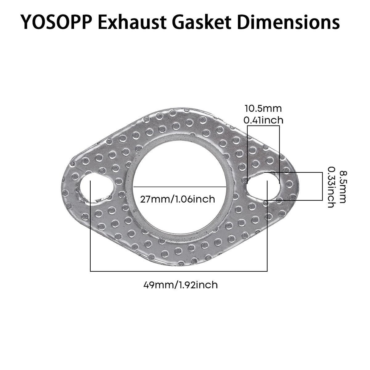 ?Component?Suitable For Gy6 Gmb139 Engine 50Cc 70Cc 90Cc 110Cc 125Cc 150Cc 200Cc Scooter Atv Kart Moped Quad Bike 4 Wheeler Dune Buggy. It Might Fit Scooters With Gy6 50Cc - 200Cc Motors Sandrail Taotao Sunl Coolster Jonway Roketa Harley Etc | ?Extra Thick Gasket? Bolt Spacing: 49Mm/1.97 Inch, Inner Port: 27Mm/1.05 Inch,Double Sides, Double Layer Extra Thick!No More Noise From Your Exhaust, No More Unpleasant Odors, And Good Mood! | ?Package Included?3 Extra Thick Quiet Washer, 2 Nitrile Gloves | ?Nitrile Gloves?Ensure That The Installation Will Not Stain Your Hands And Avoid The Hassle Of Washing Your Hands! | ?Service Commitment?Excellent Customer Service Team, Such As Quality Problems, Promise No Reason To Return, Worry-Free Refund.