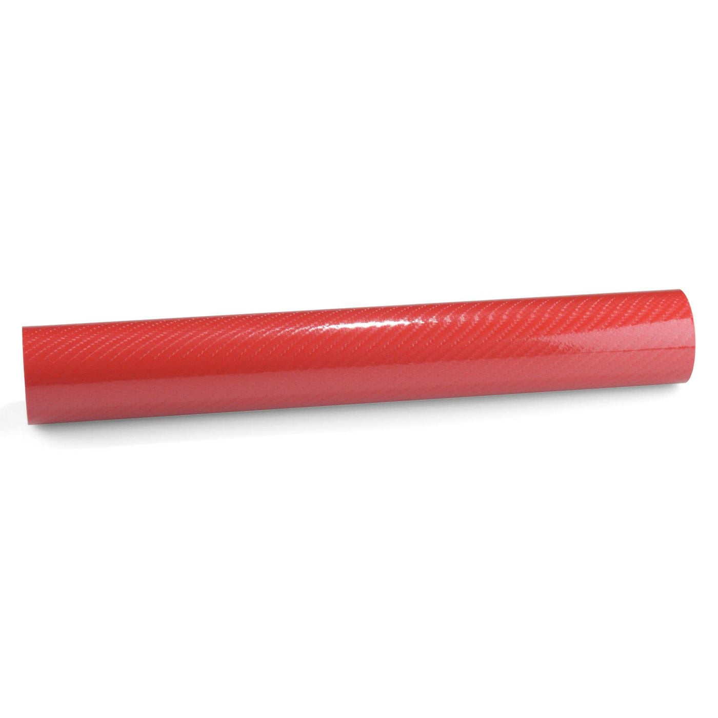 12'X60' (1Ftx5Ft) Red 7D Carbon Fiber Textured High Gloss Vinyl Wrap Auto Car Sticker Decal Film Sheet Bubble Free Air Release Technology With Tool Kit