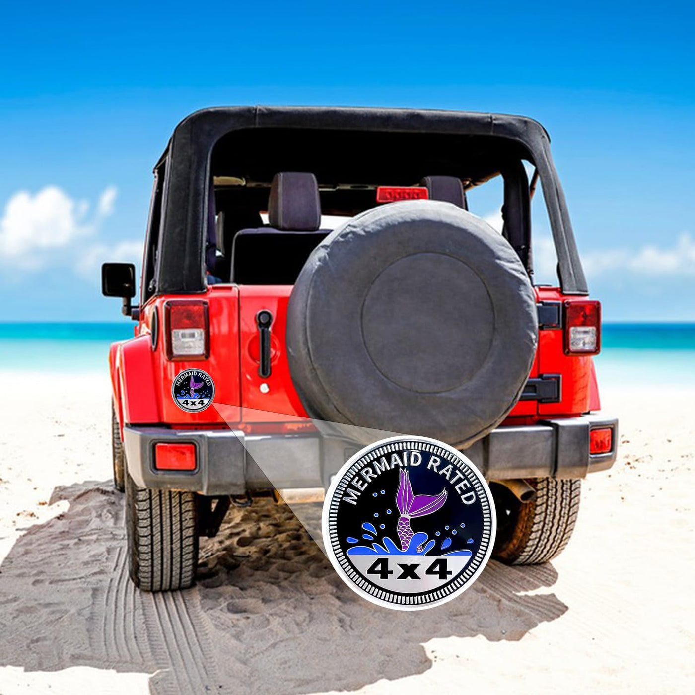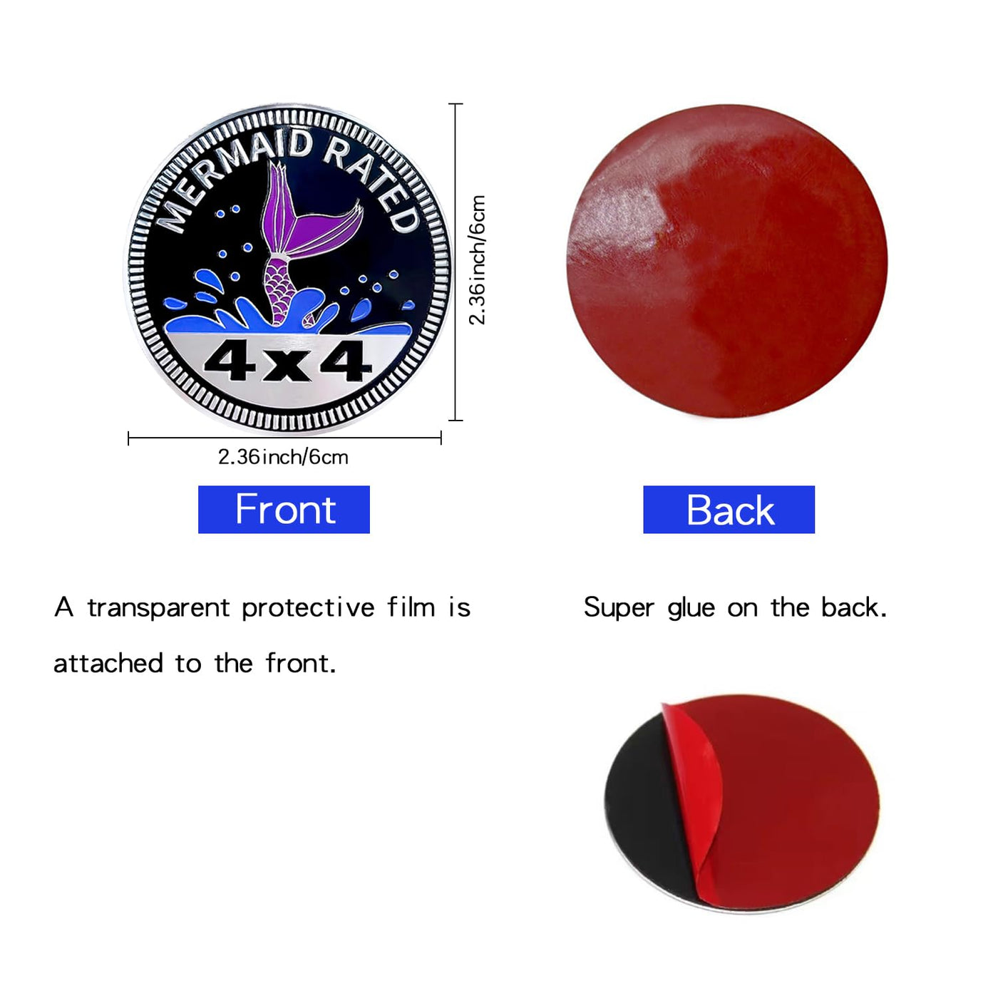 2 Pcs Mermaid Badge Rated Car Emblem, 4 X 4 Metal Automotive Badge, 3D Round Metal Car Badges Emblems, Car Badge Decals Stickers Compatible With Jeep Wrangler Vehicles Trucks Suv Rv